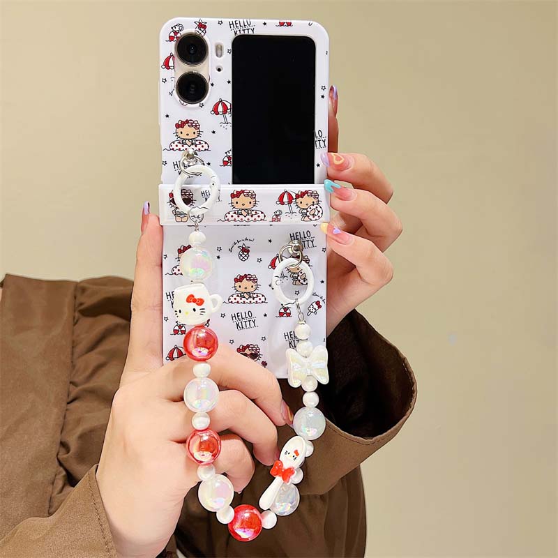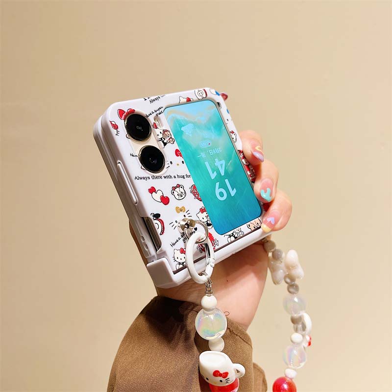 適用于oppoFindN2flip手機殼N3flip上下折疊硬殼糖果色保護套日系Kitty貓KT貓卡通可愛ins風萌系少女手鏈條