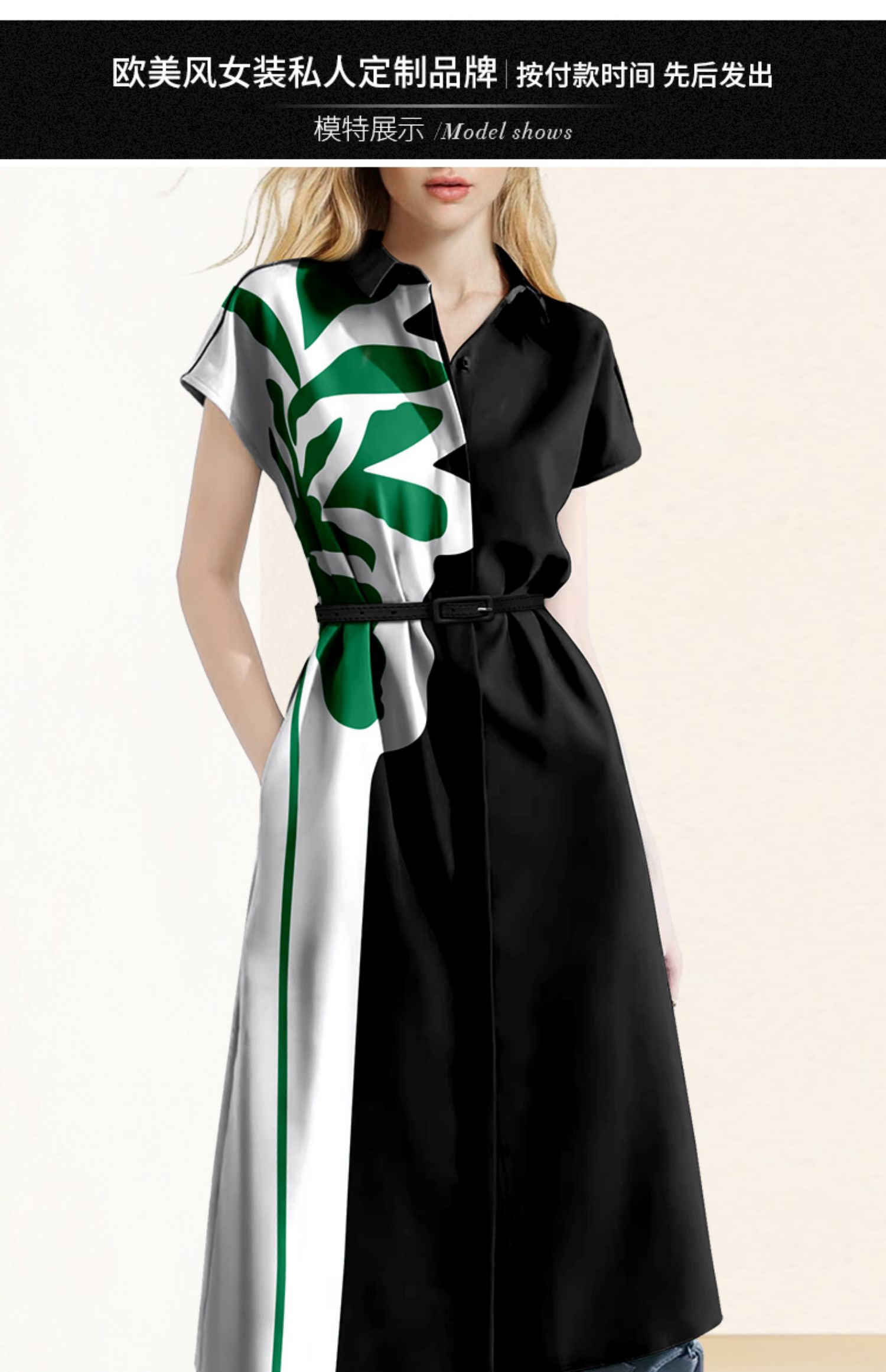 迪菲麗格度假休閑高端氣質連衣裙2023新款女撞色翻領顯瘦垂感裙子