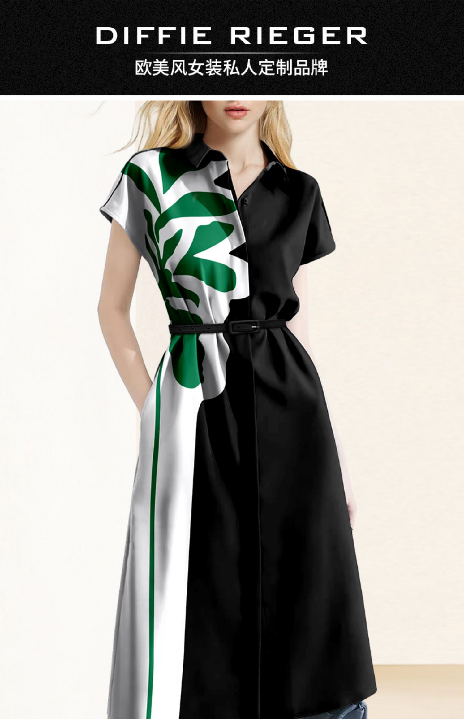 迪菲麗格夏季高端優雅氣質連衣裙女神范2023新款撞色時尚襯衫裙子