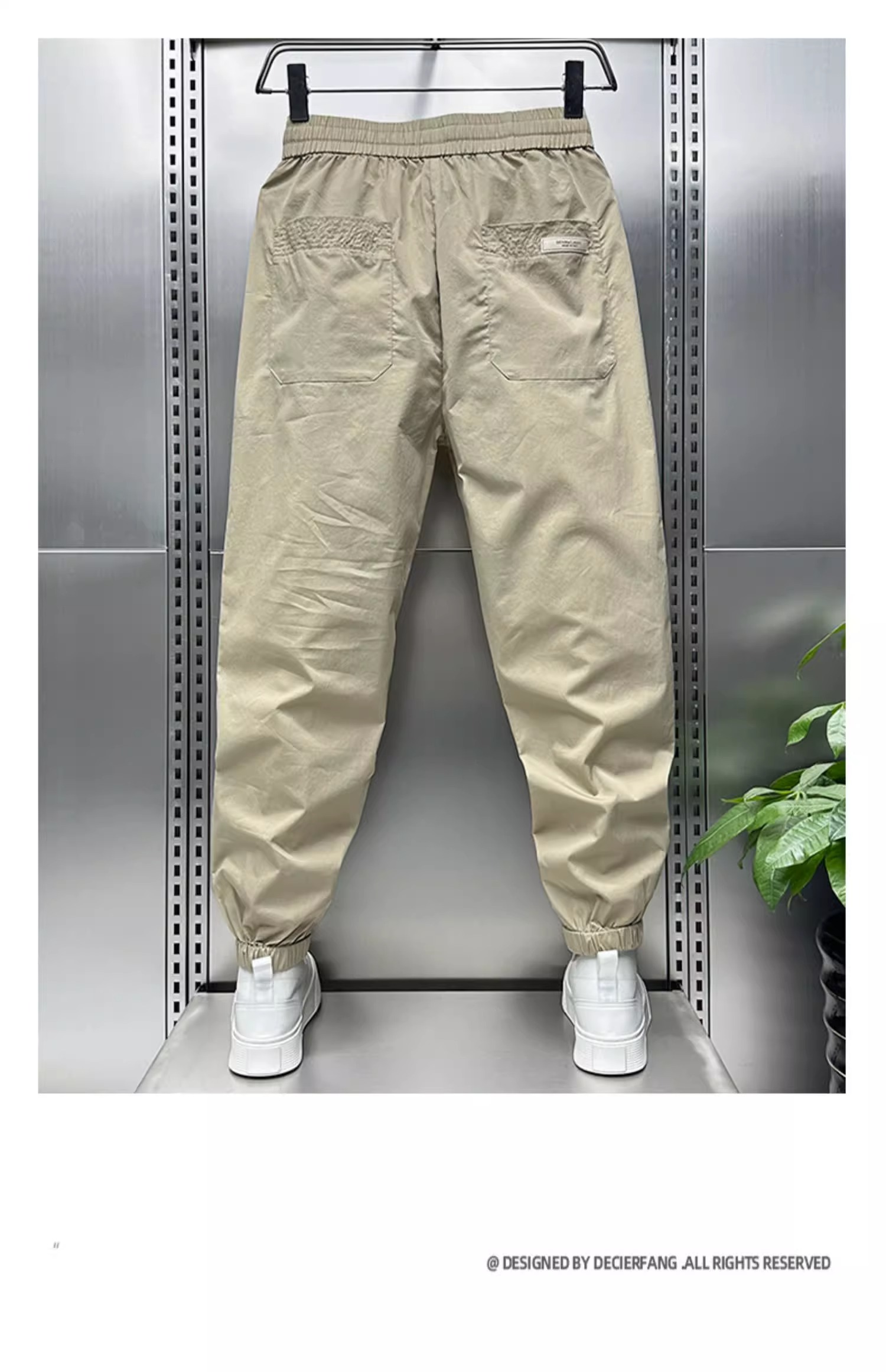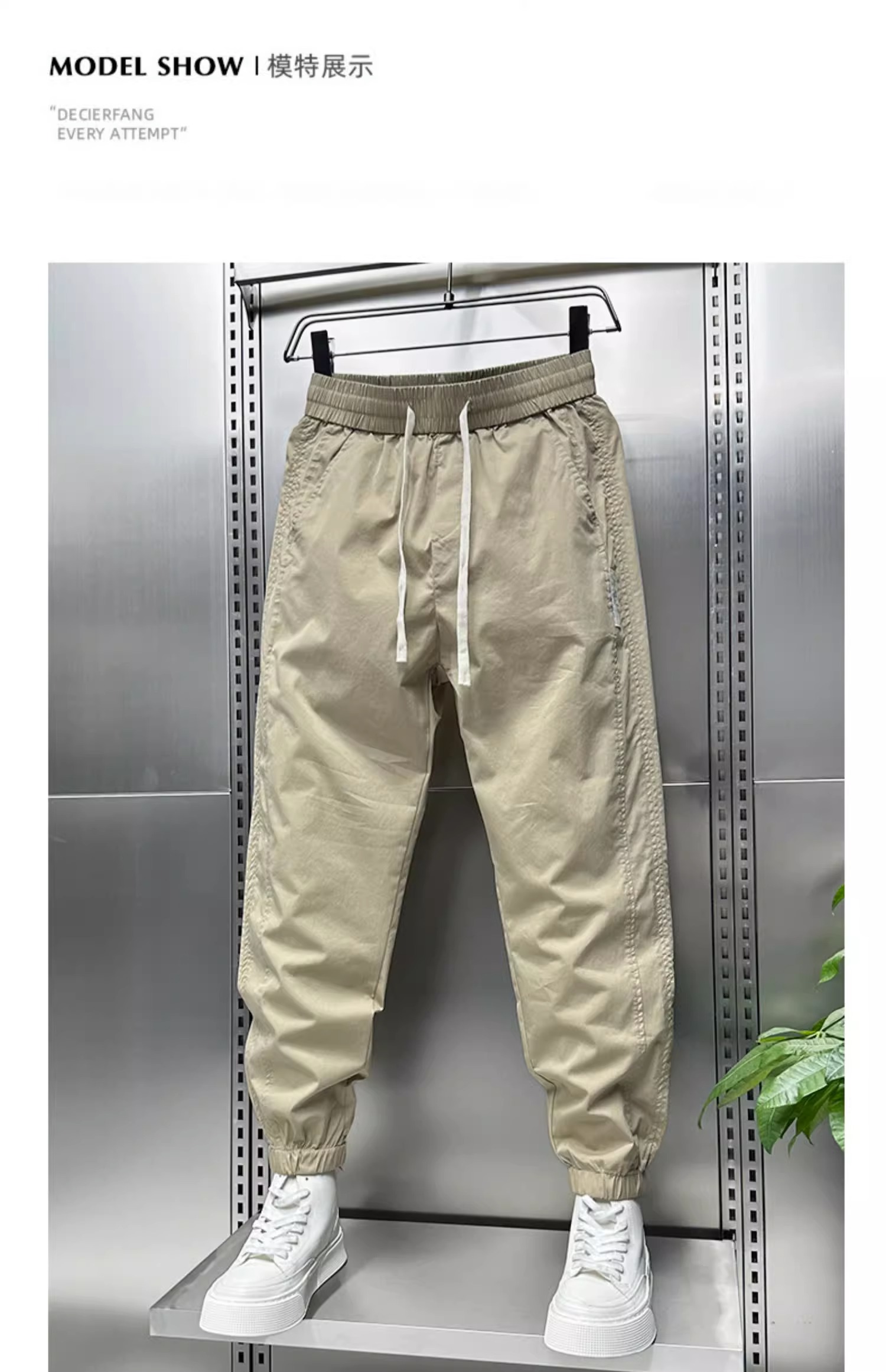 休閑褲男士夏季2023新款速干薄款運動褲潮流寬松九分束腳工裝褲男