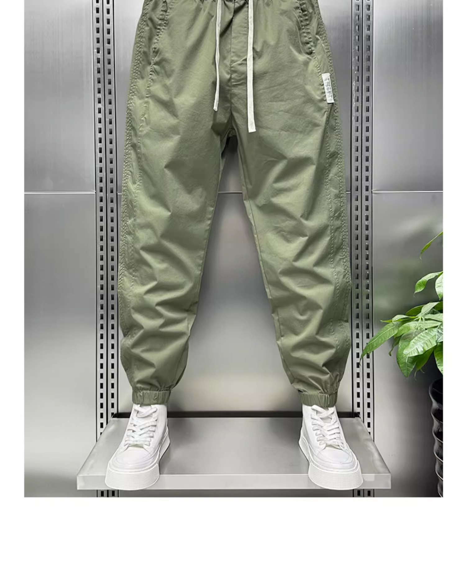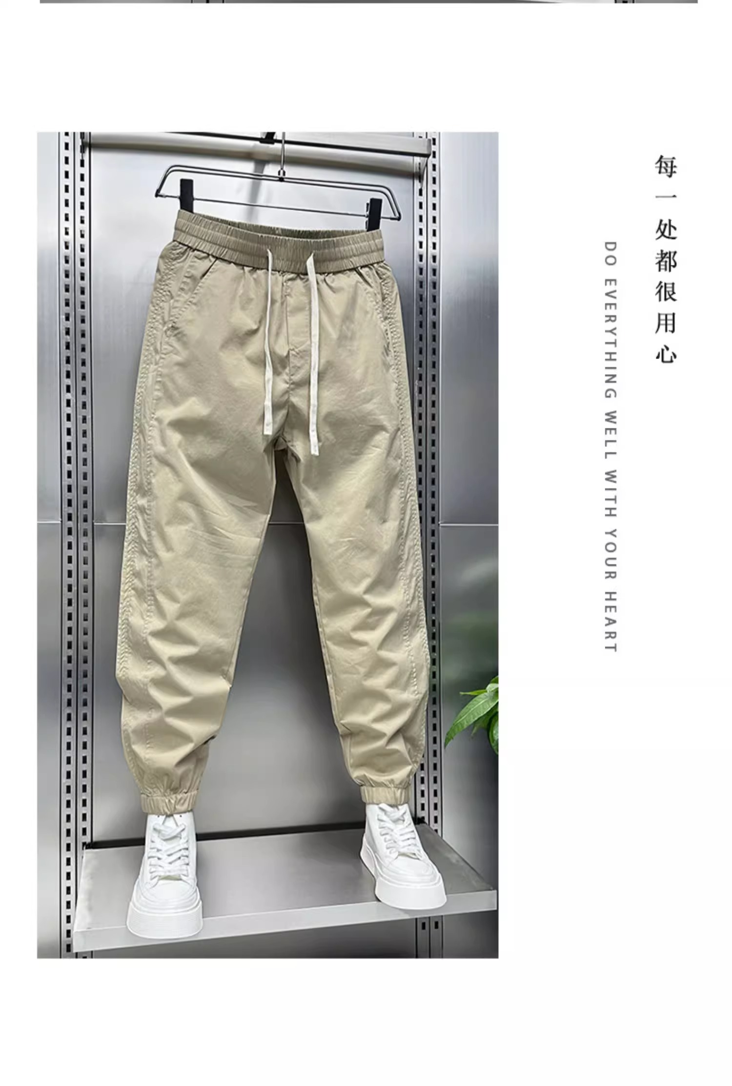 真維斯2023新款全棉休閑褲男夏季薄款哈倫束腳蘿卜九分褲潮牌抽繩