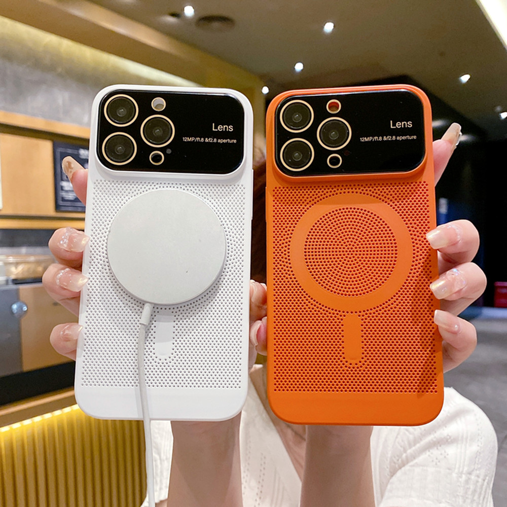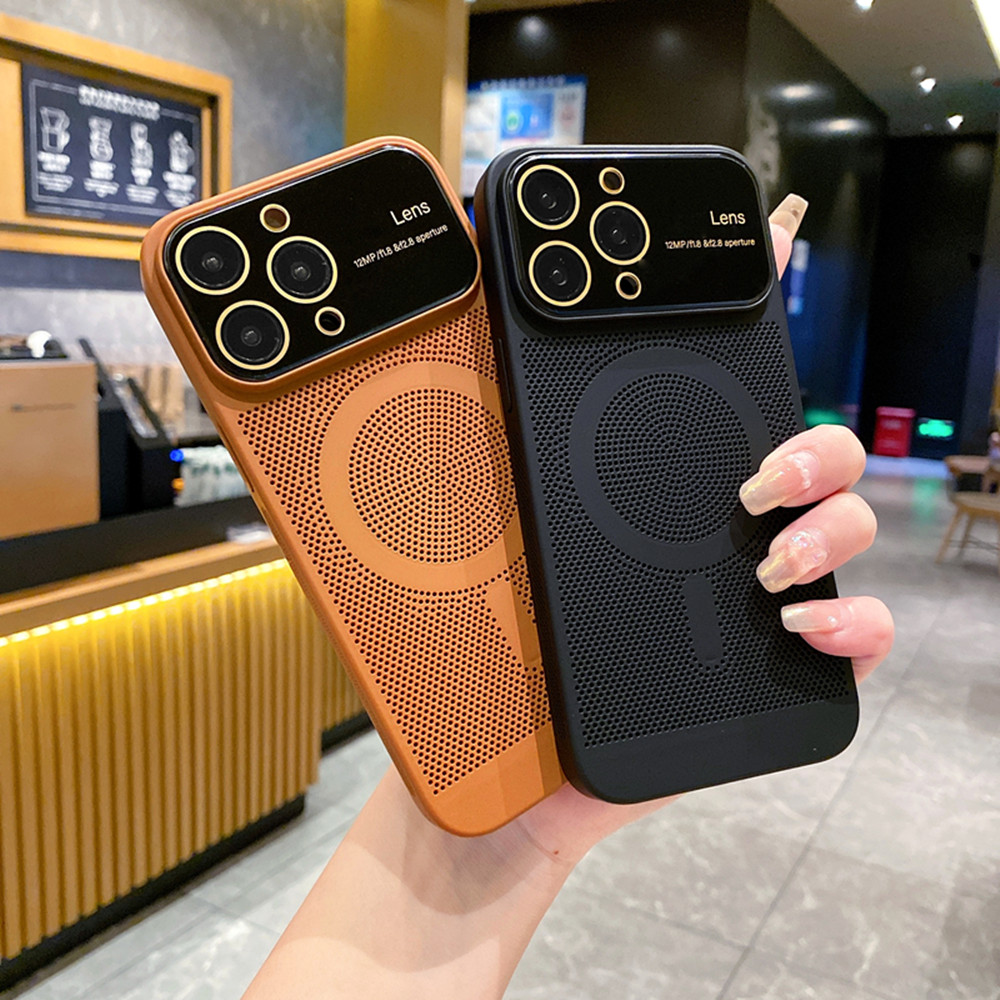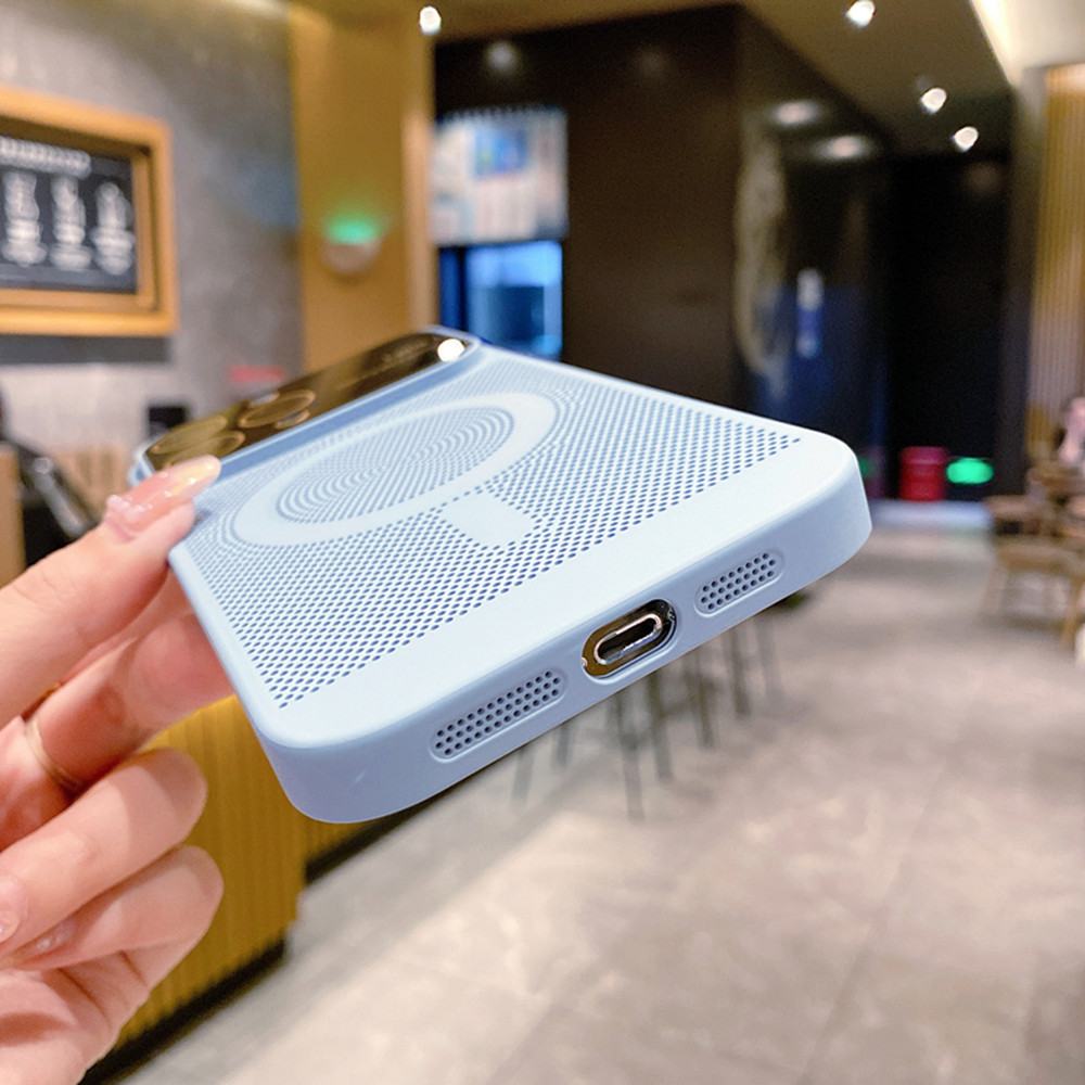 Magsafe磁吸適用蘋果14ProMax透氣散熱手機殼蘋果13新款超薄手感12鏡頭全包15防摔保護套11高級感網格14Plus