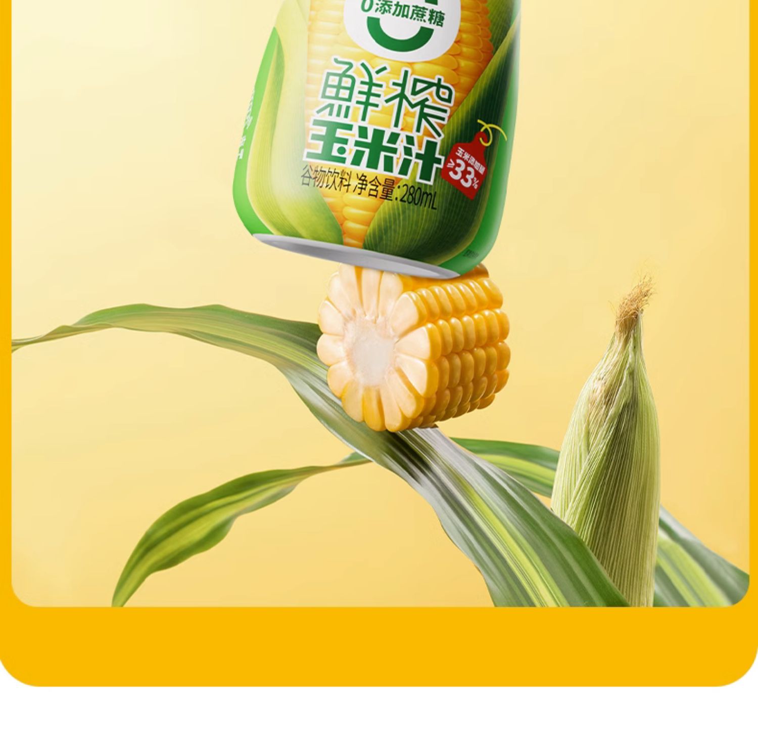 椰泰輕上0添加蔗糖鮮榨玉米汁即飲早餐瓶裝干凈營養谷物飲料280ml