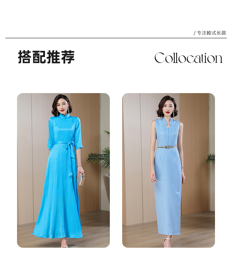 帝弗潤馳2023新中式夏裝新款小立領連衣裙長款優雅藍色及踝長裙