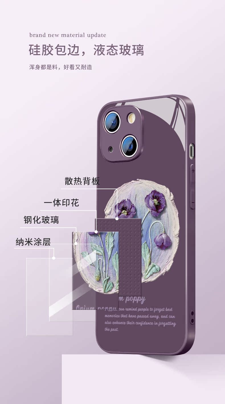 甲方適用于榮耀華為vivoOPPO紅米蘋果小米鋼化玻璃手機殼iPhone14promax創意花朵S15pro油畫X80女款p40防摔殼