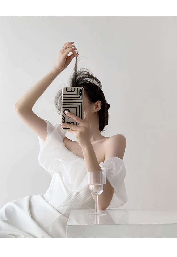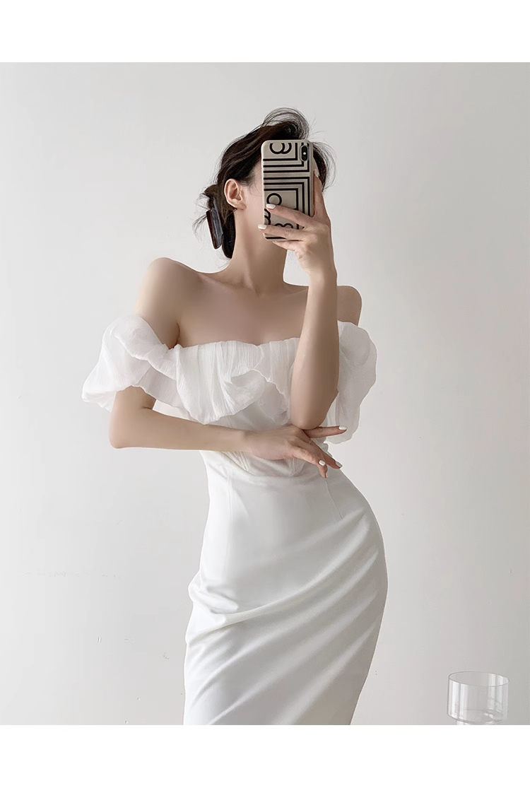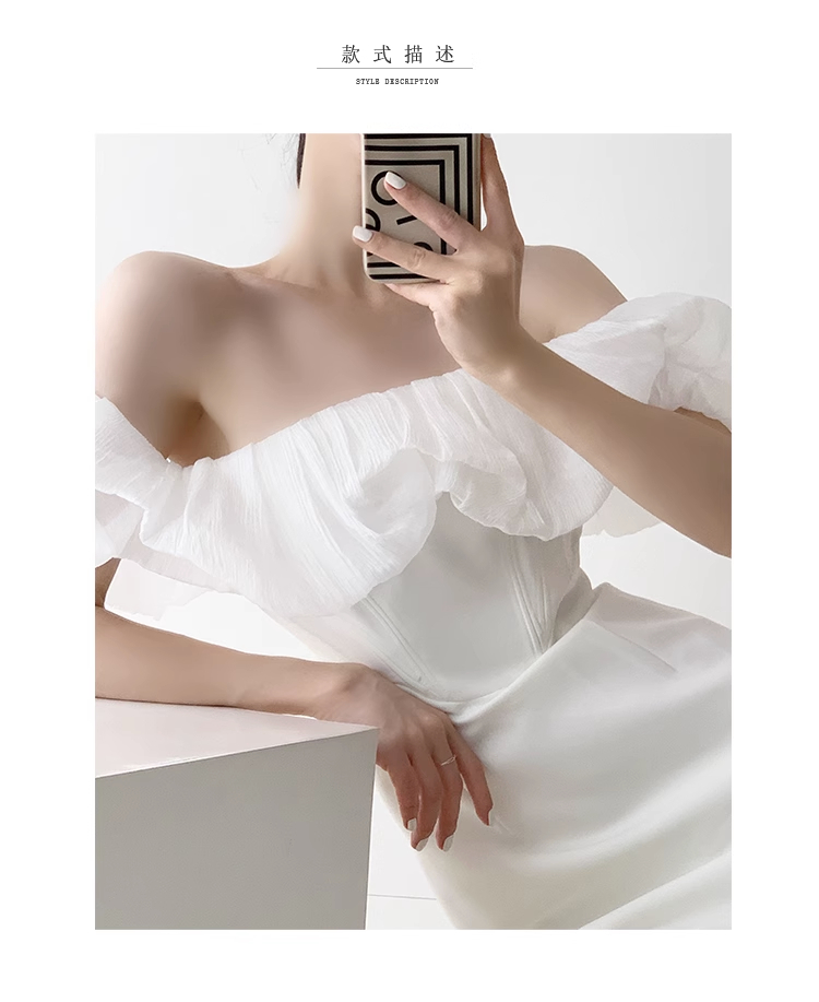 FENING MAJE 抹胸一字肩連衣裙女輕奢高端名媛氣質收腰顯瘦禮服裙