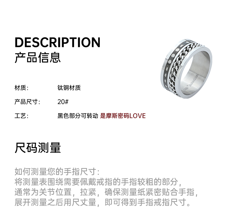 【摩斯密碼LOVE】BJHG不計后果復古情侶鈦鋼戒指潮牌鐳射字母指環