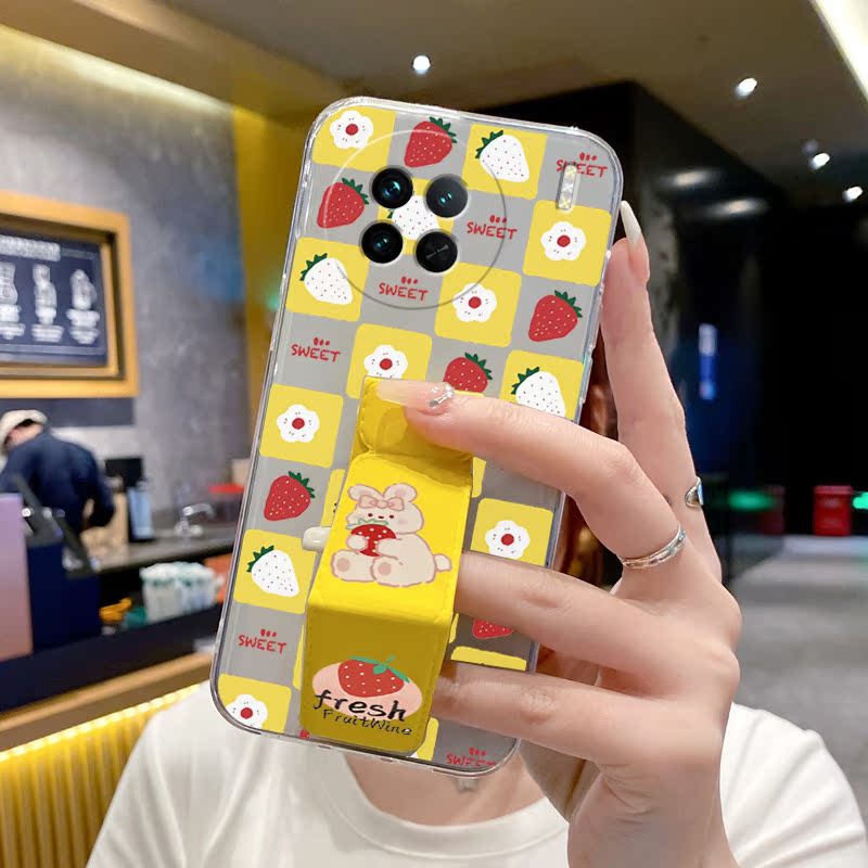 vivox90Pro手機殼透明全包vivox90防摔X80Pro+桌面支撐架X80/x70/x60t/x50/X30/X27女款可愛小兔腕帶硅膠軟殼