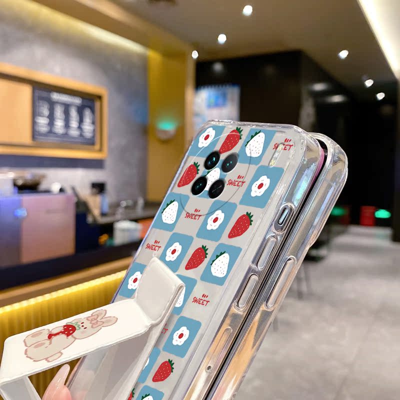 適用iPhone14透明手機殼14Pro/13ProMax蘋果13磁吸帶支架13桌面支撐架12/11/XR/8/7/6s防摔草莓小兔折疊腕帶