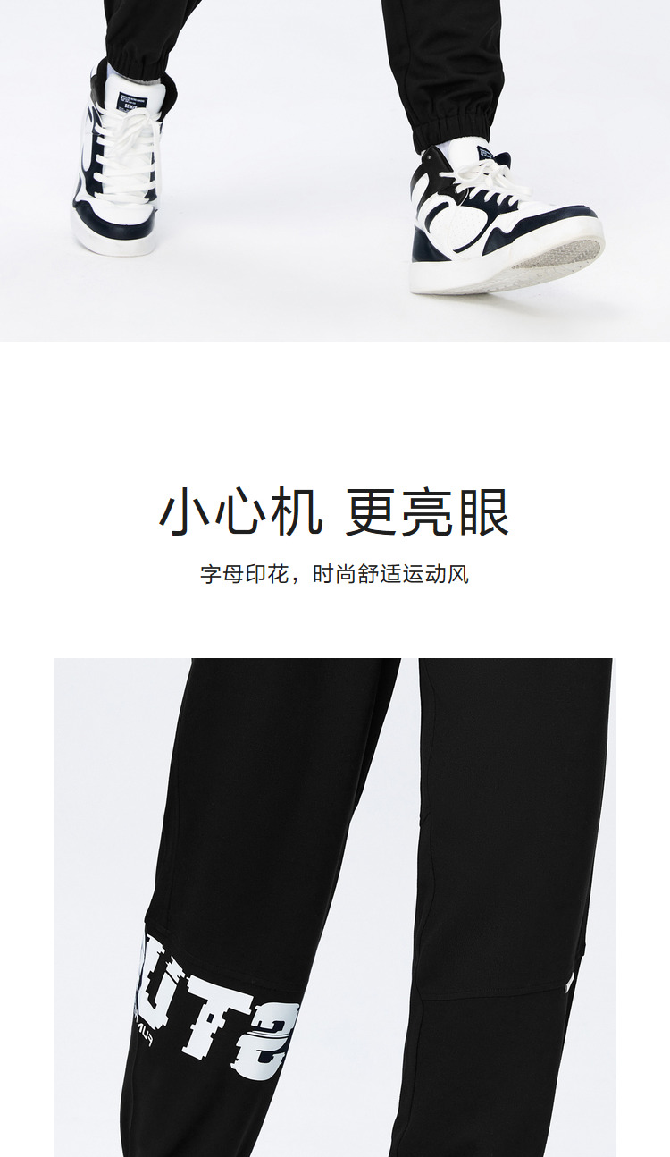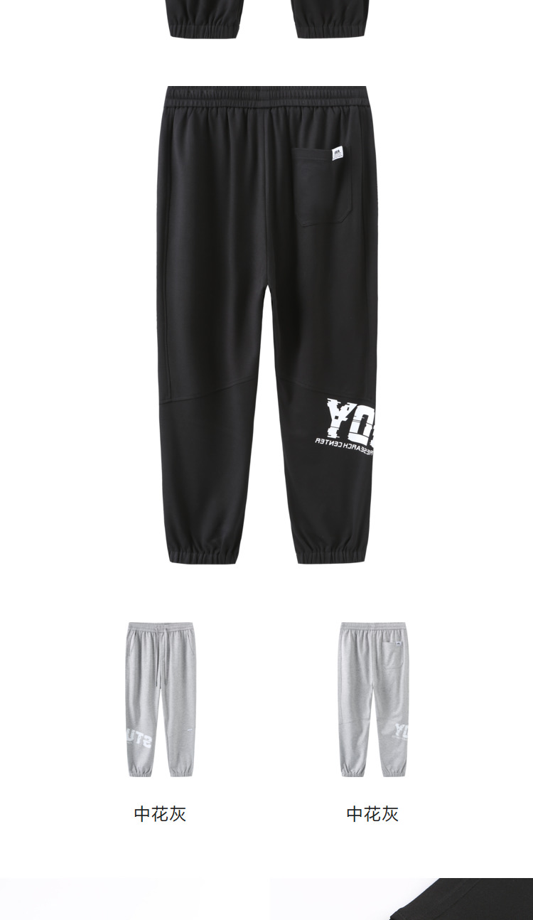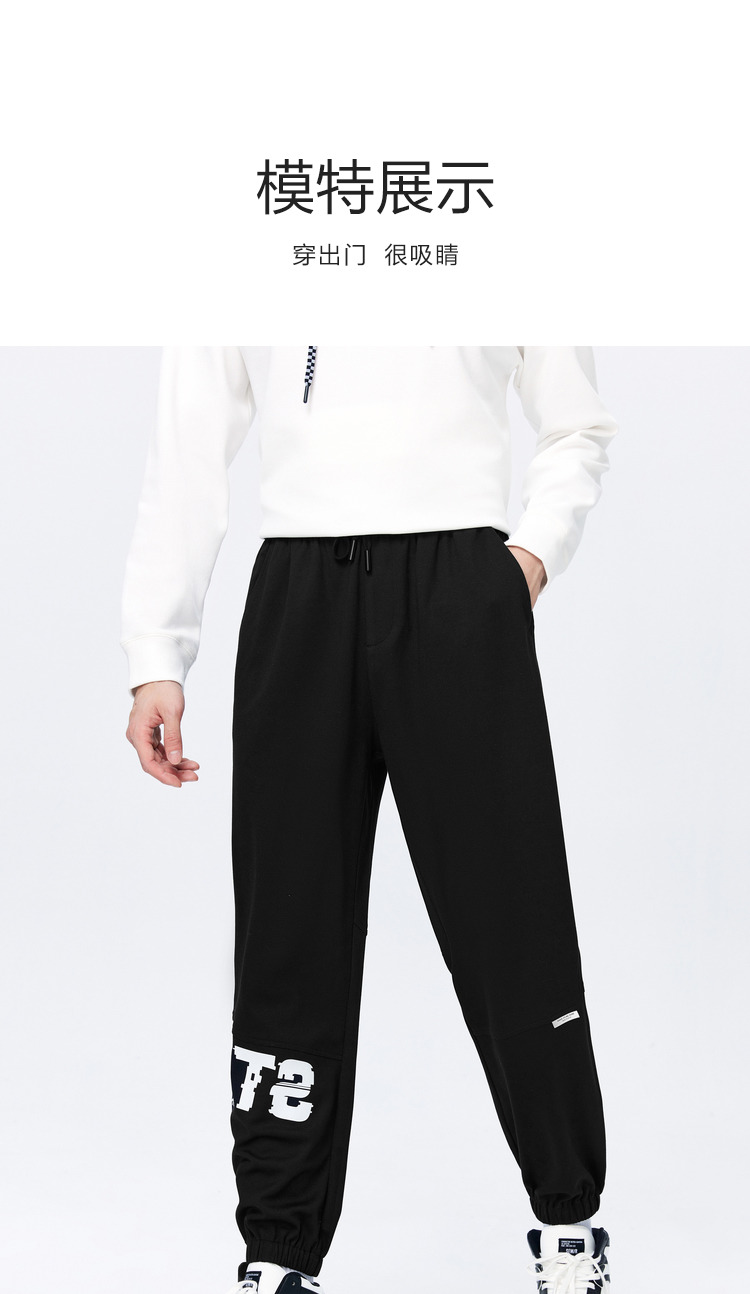 森馬休閑褲男秋季日常休閑時尚褲子潮流印花針織束腳運動慢跑長褲