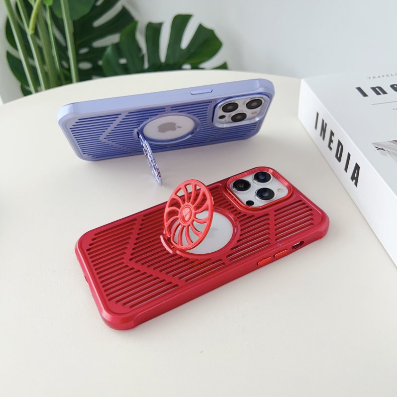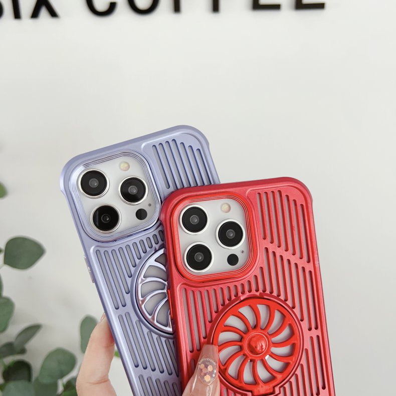 適用蘋果14promax手機殼新款透氣iphone13鏤空散熱帶風扇支架14Pro適合夏天的保護套11promax超薄全包防摔