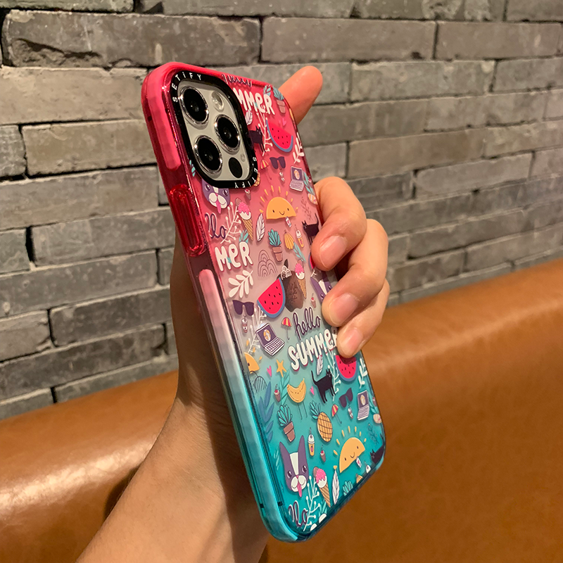 漸變粉藍夏日你好適用iPhone13promax蘋果12手機殼14透明軟殼
