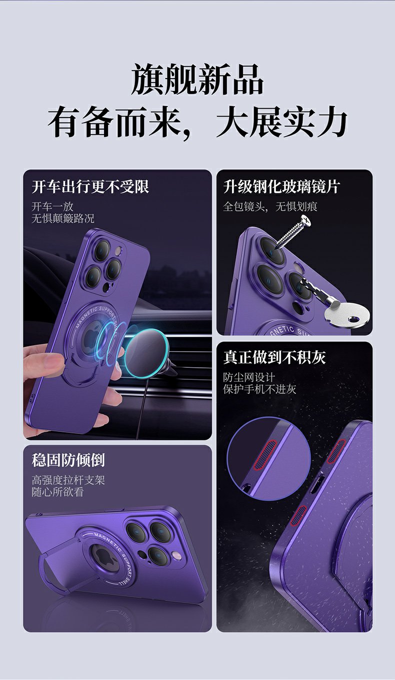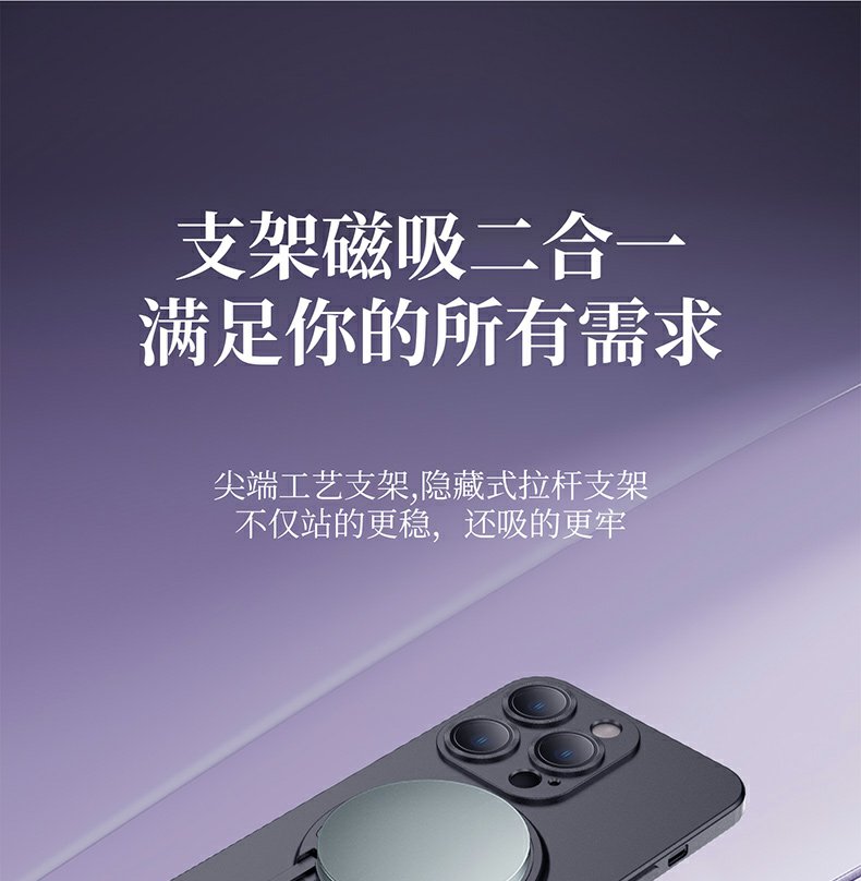 360°支點殼Magsafe磁吸適用蘋果14ProMax手機殼隱形指環支架iPhone15高級感13男12新款創意11全包防摔硬xs