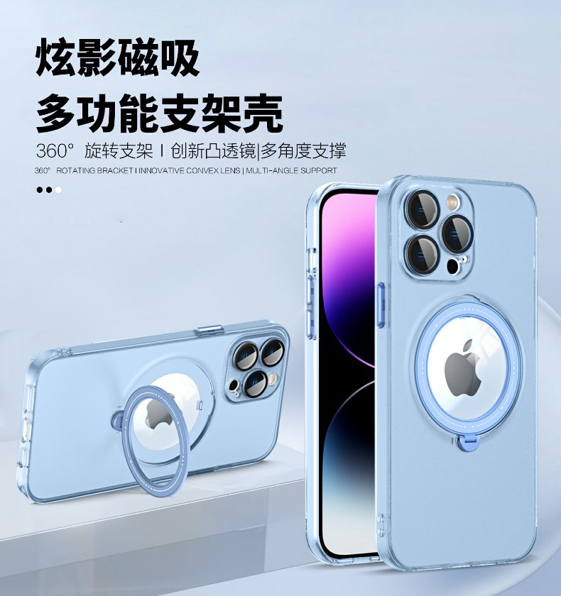 360°支點殼Magsafe磁吸適用蘋果14ProMax手機殼隱形指環支架iPhone15高級感13男12新款創意11全包防摔硬xs