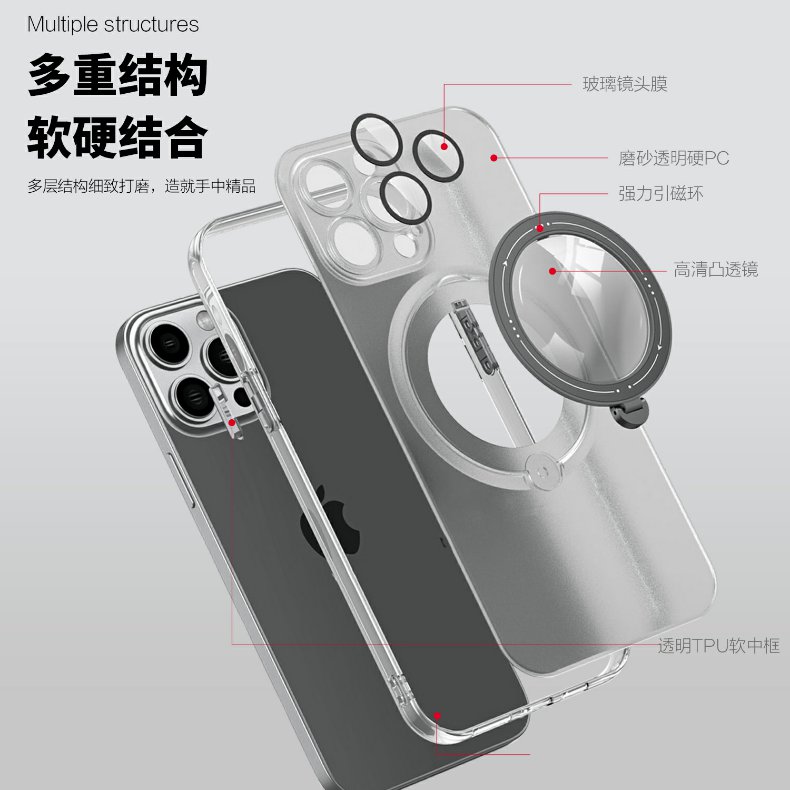 適用蘋果14promax手機殼magsafe磁吸支架一體鏡頭膜iphone13pro新款磨砂支架防摔iPhone12保護套超薄11高級感