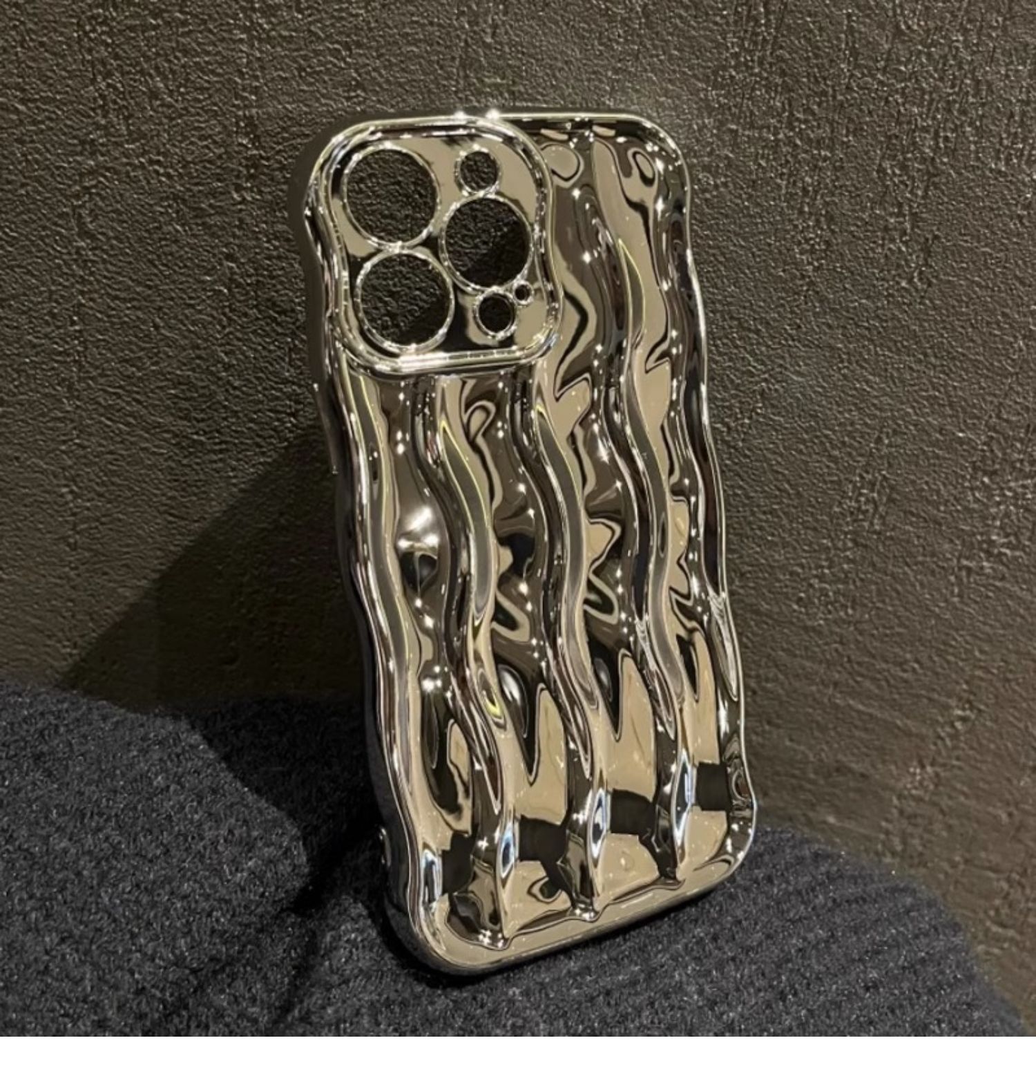 umj【 實物更漂亮】啞光水波紋簡約高級適用iphone14手機殼新款蘋果14proMax電鍍13網紅12防摔保護套11男女潮
