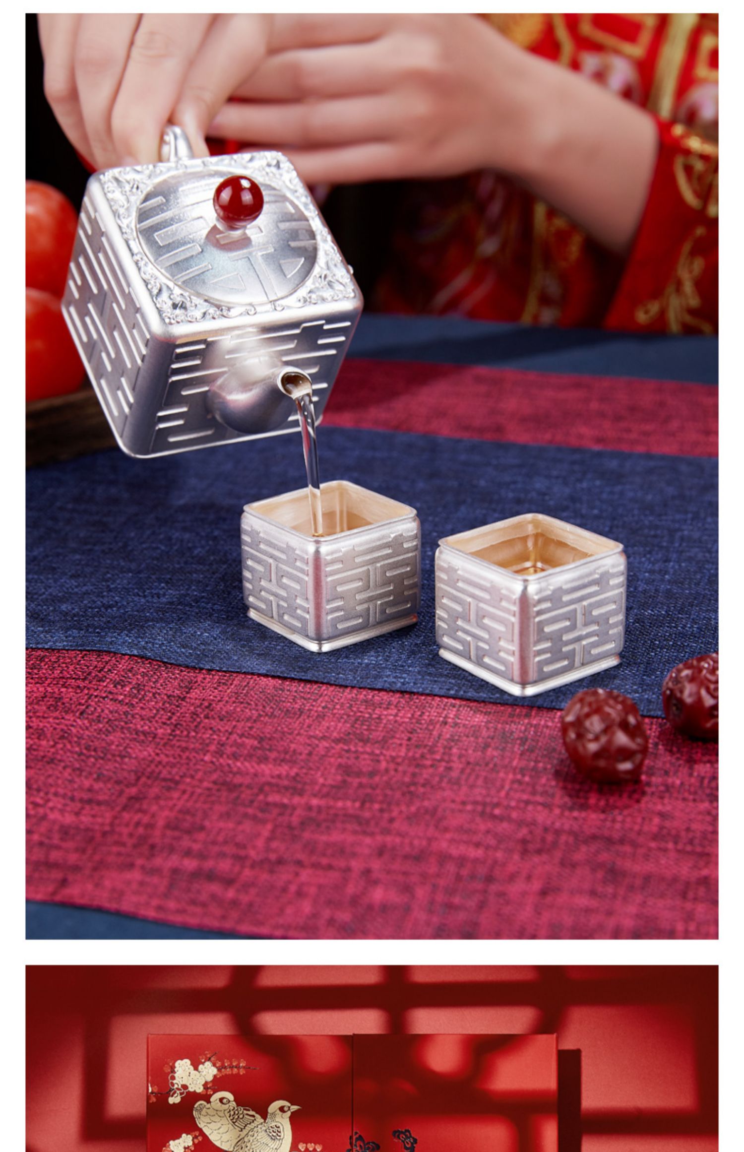 銀密碼純銀999泡茶壺家用婚慶用品工藝品美琺瑯茶具套裝茶道送禮
