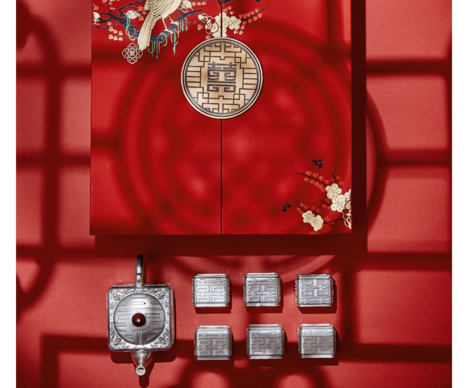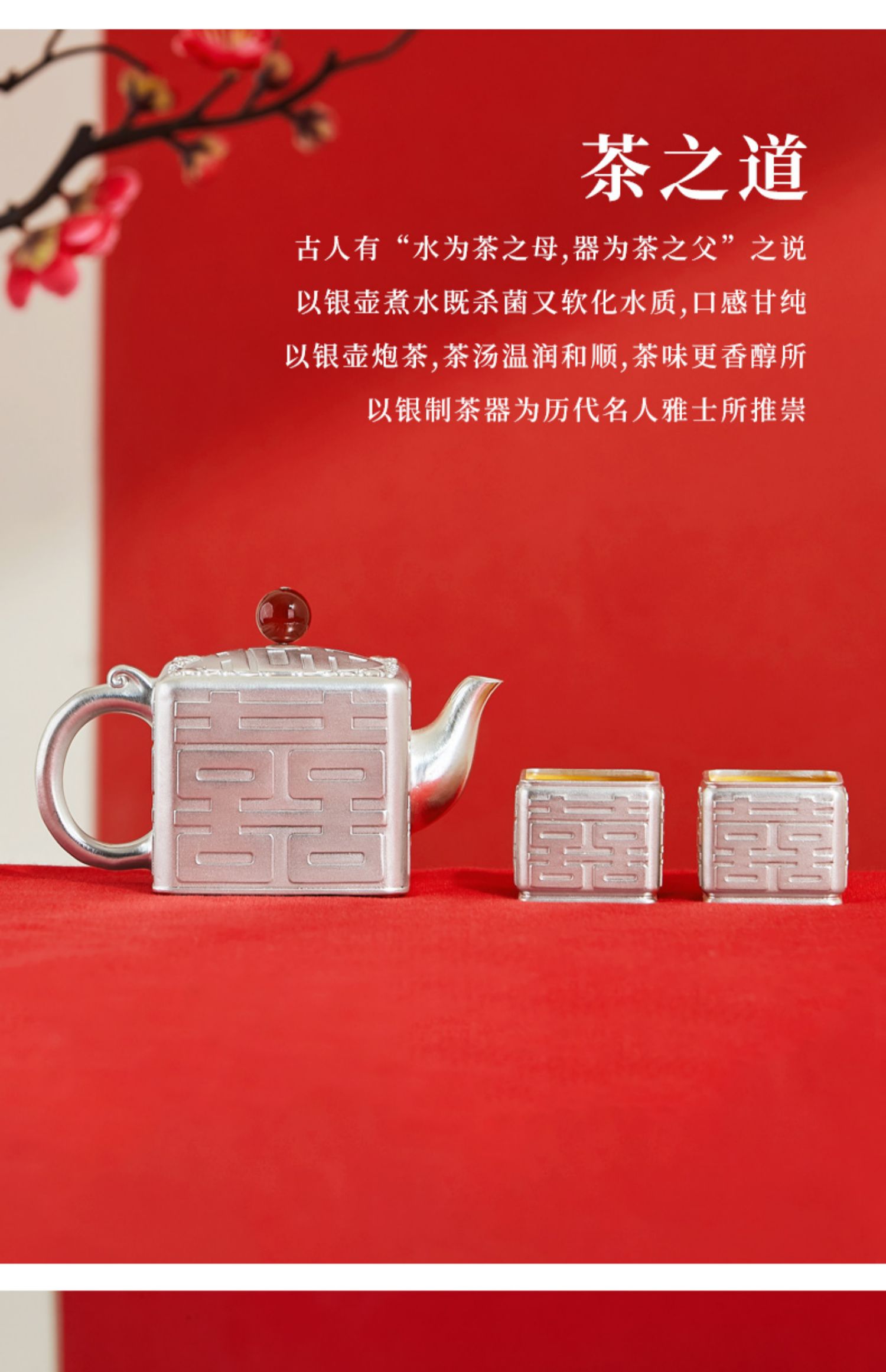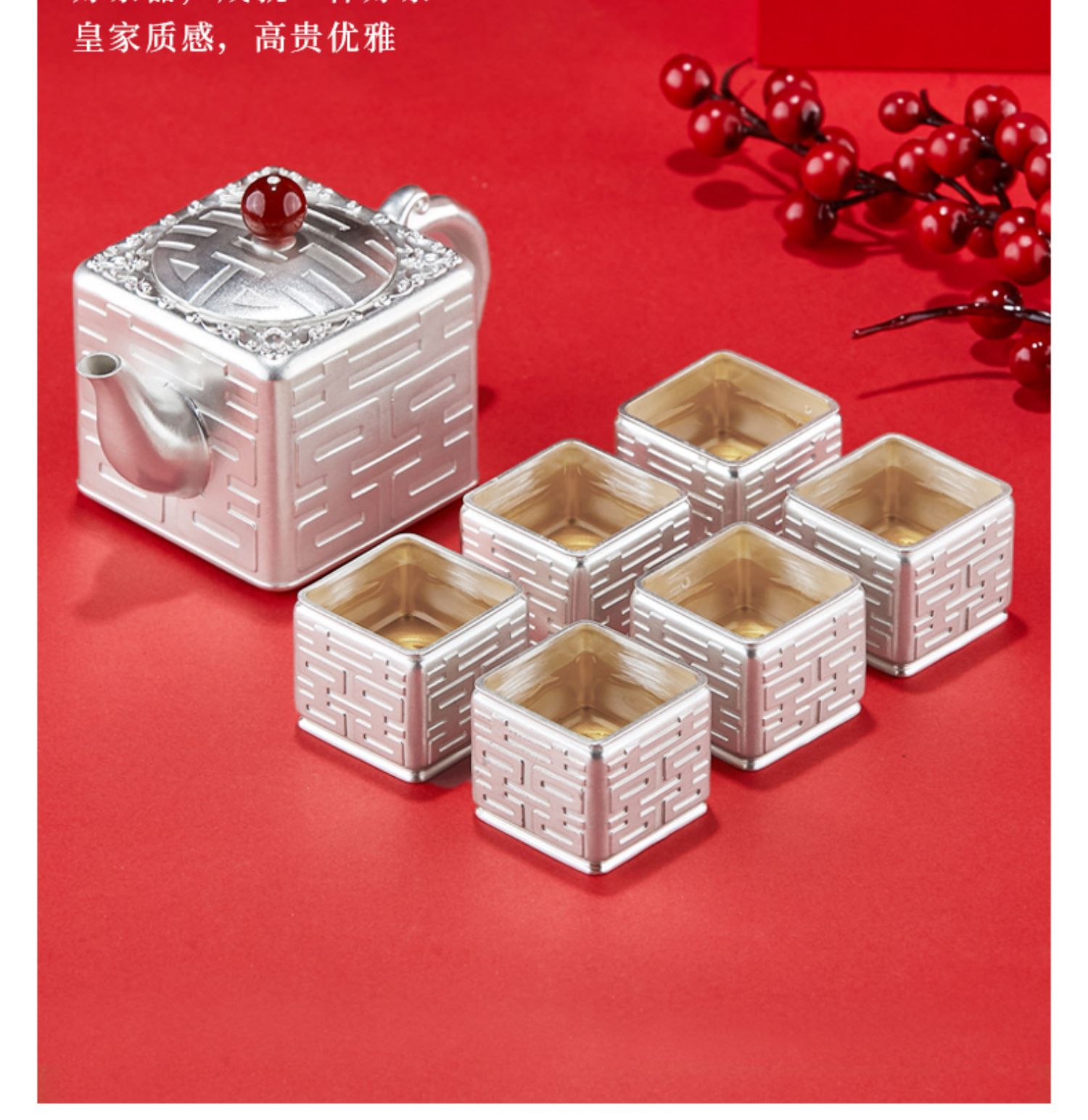 銀密碼999足銀百福具臻茶具套裝家用茶杯精致禮盒商務辦公室送禮