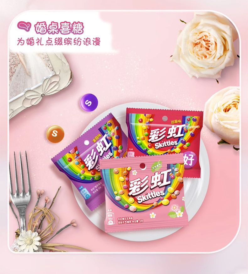 箭牌彩虹糖原果味9g*10袋裝酸勁味兒童果汁軟糖結婚喜糖過年零食