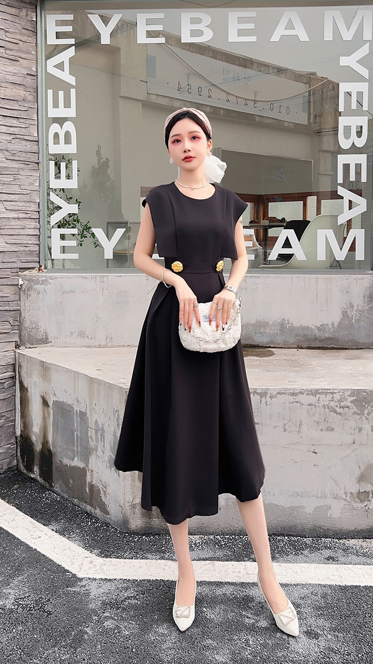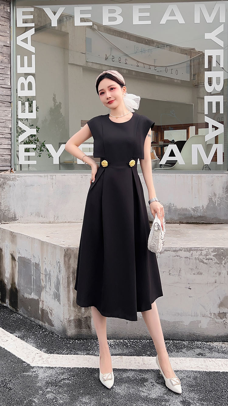 小黑裙a字法式浪漫修身高端氣質垂墜感連衣裙夏季2023新款大擺裙
