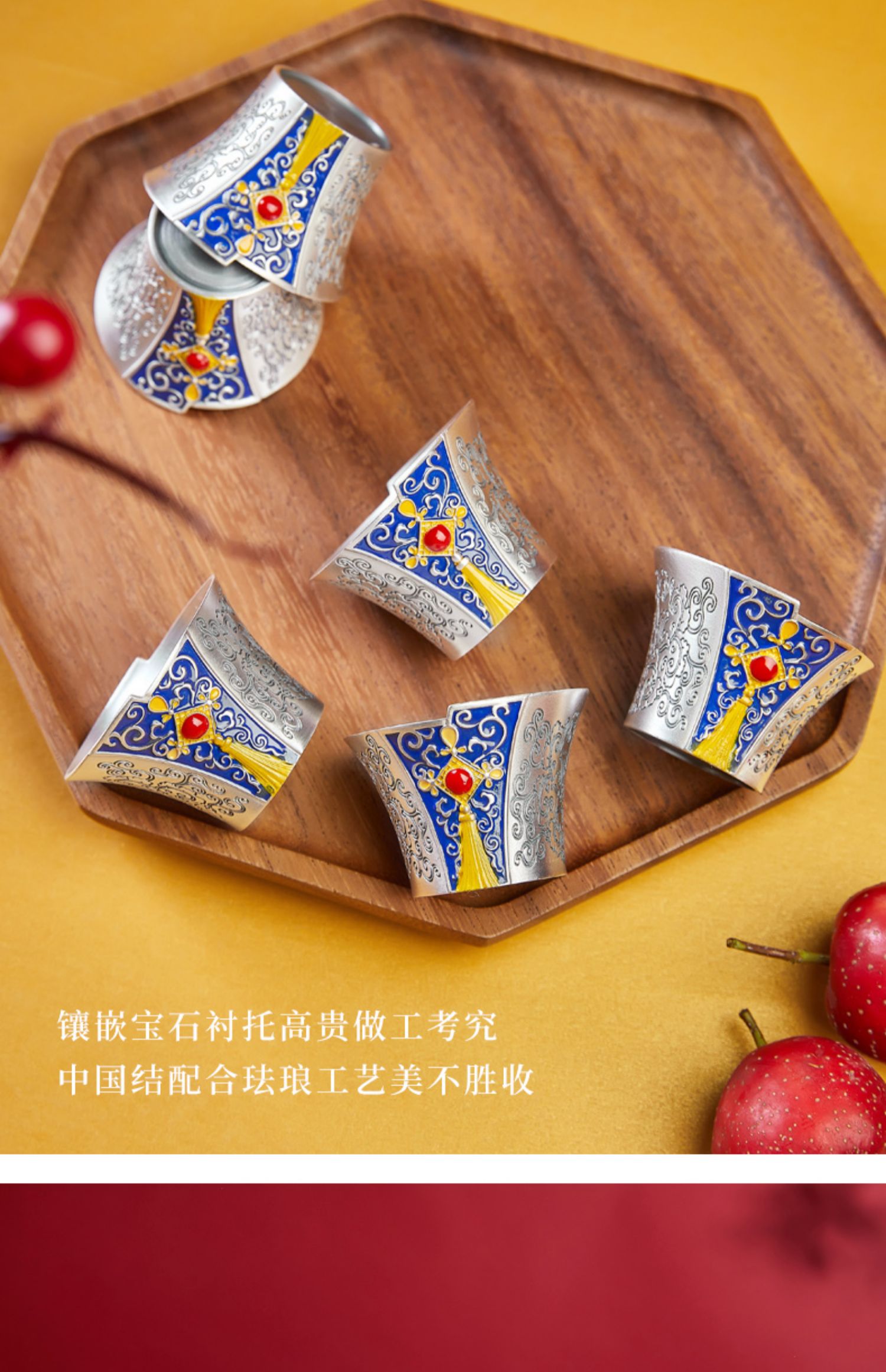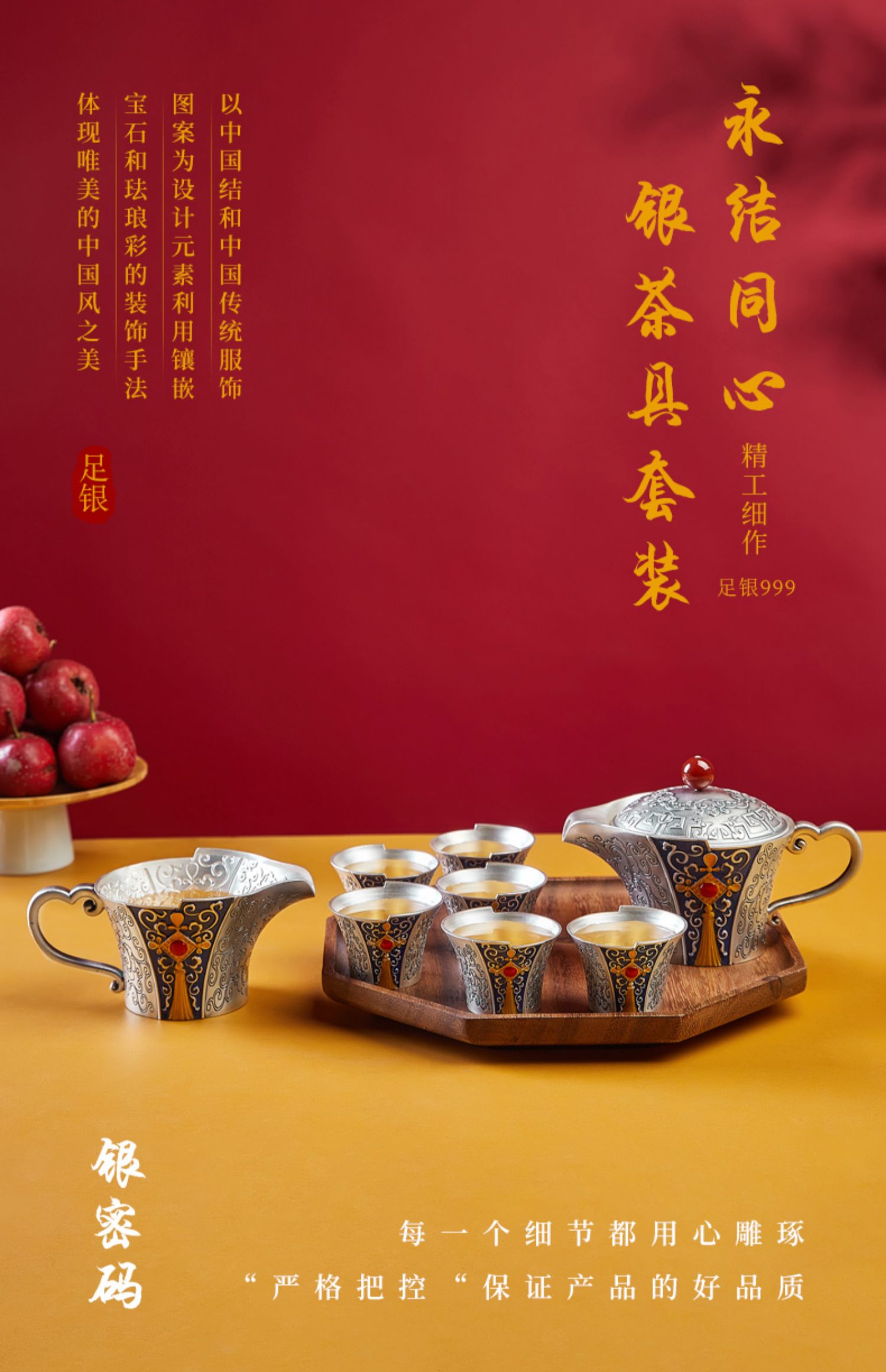 順欽銀樓s999純銀套裝百福具臻茶杯