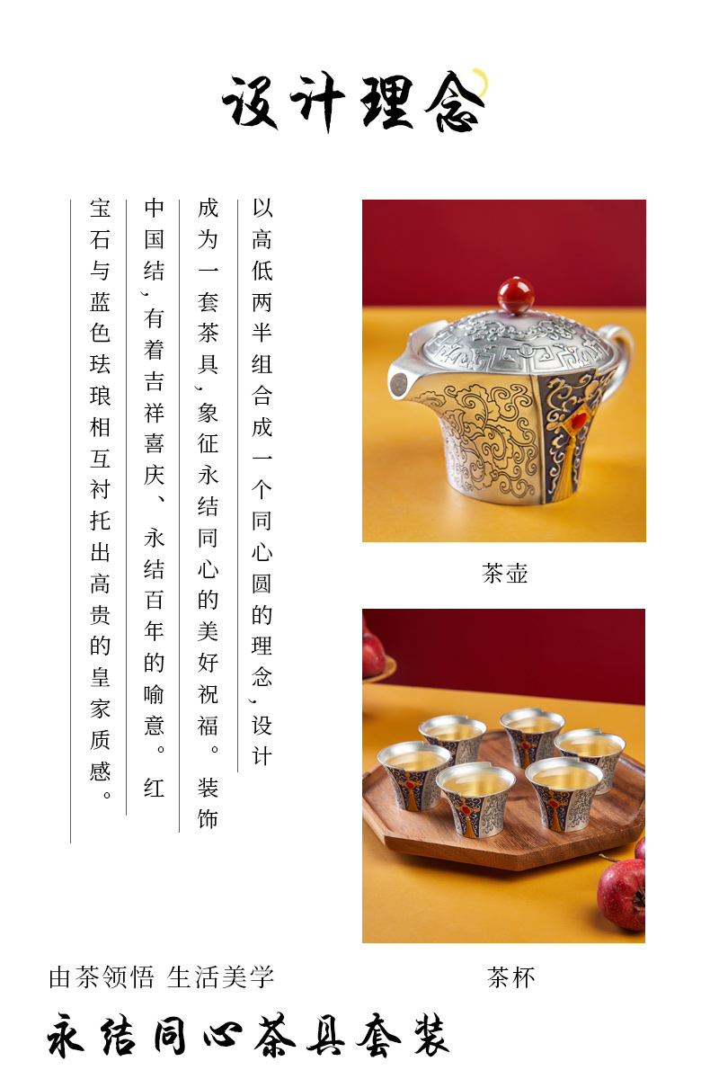 銀密碼999足銀百福具臻茶具套裝家用茶杯精致禮盒商務辦公室送禮