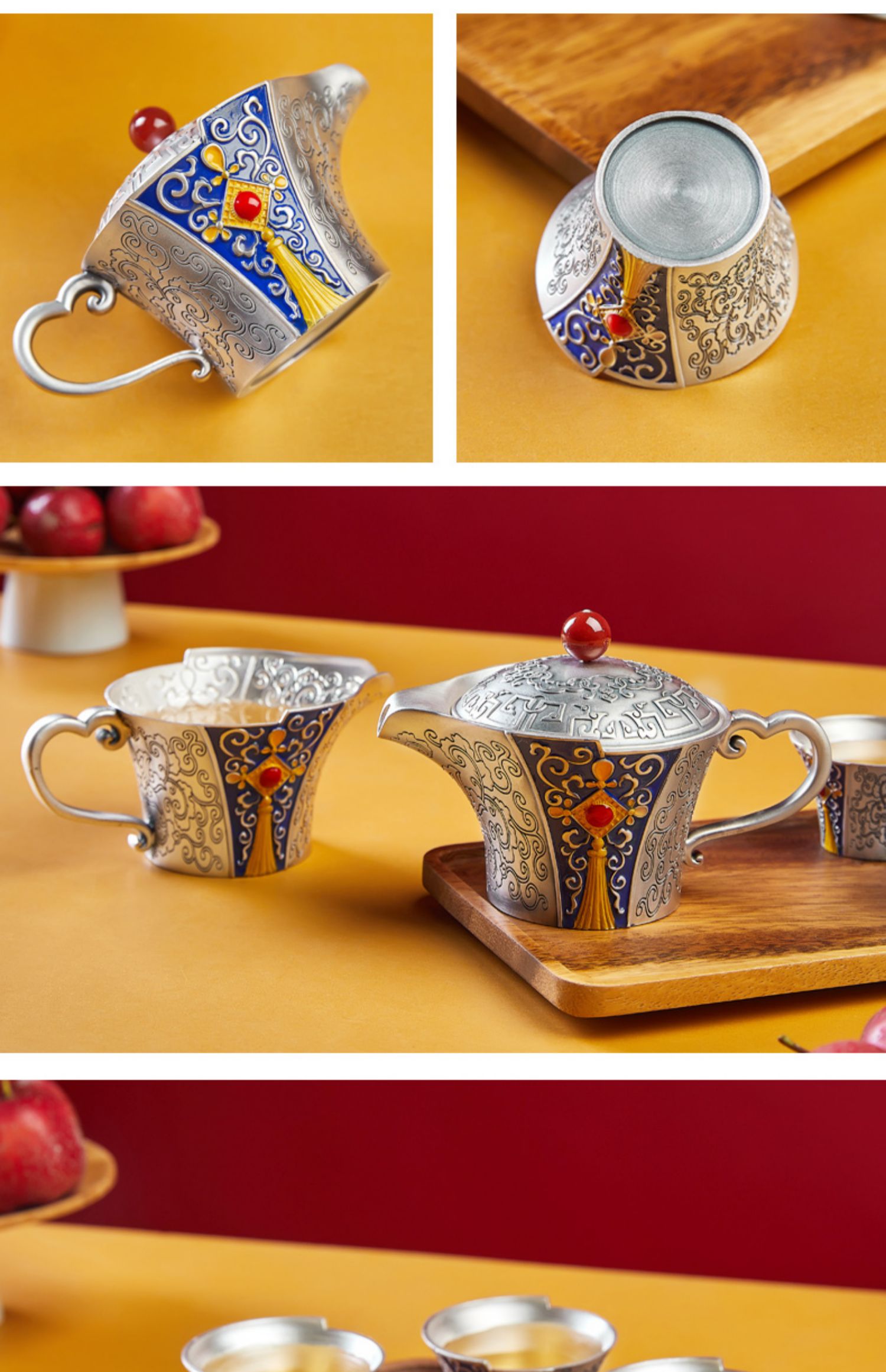 銀密碼純銀999泡茶壺家用婚慶用品工藝品美琺瑯茶具套裝茶道送禮