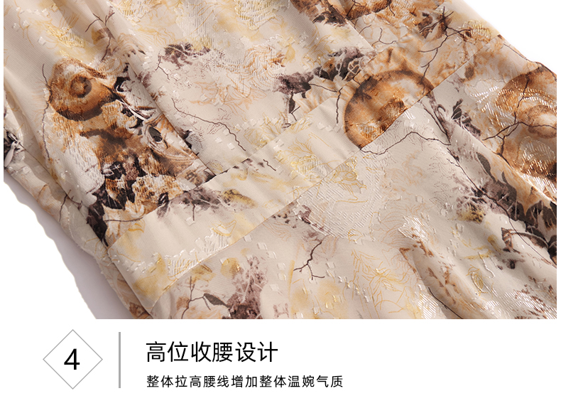 軍綠色印花連衣裙高級感2023夏季新款收腰顯瘦大擺裙氣質減齡長裙