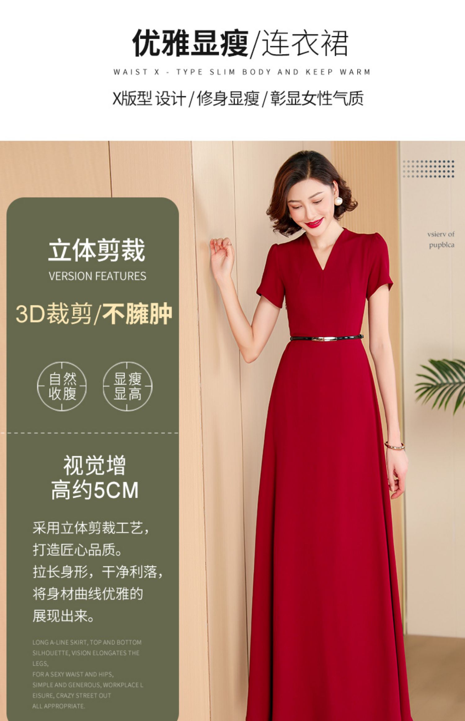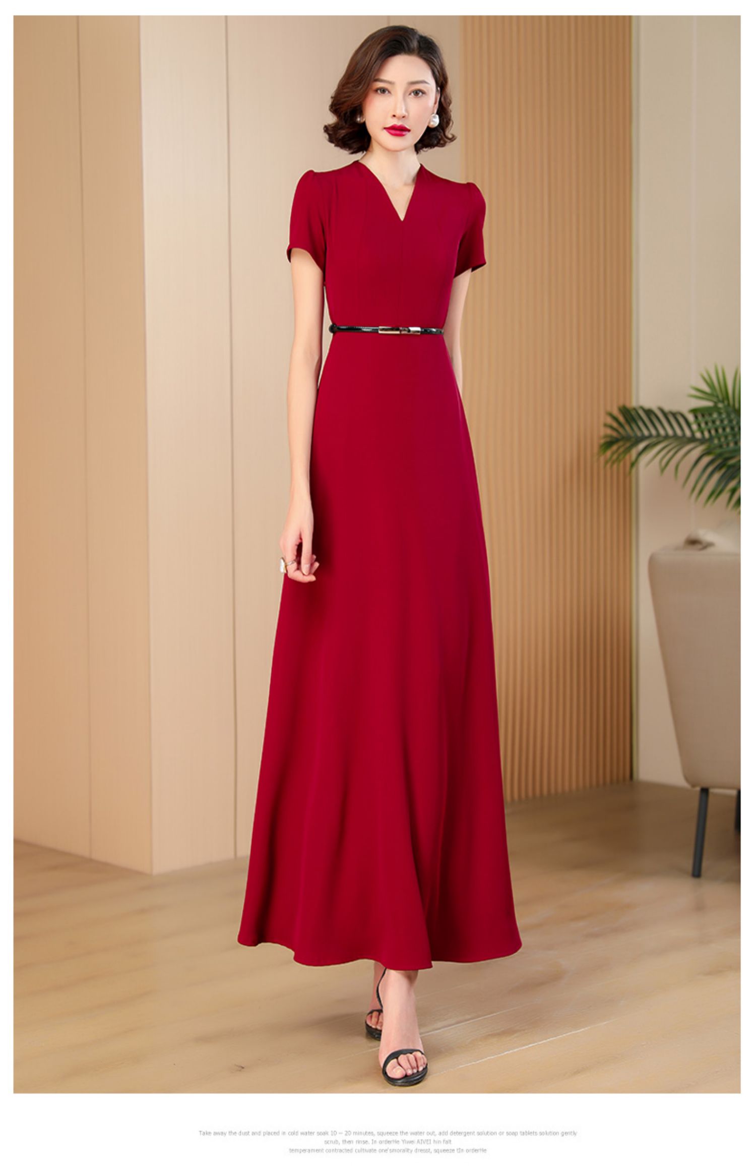 高級感酒紅色植絨提花長款連衣裙