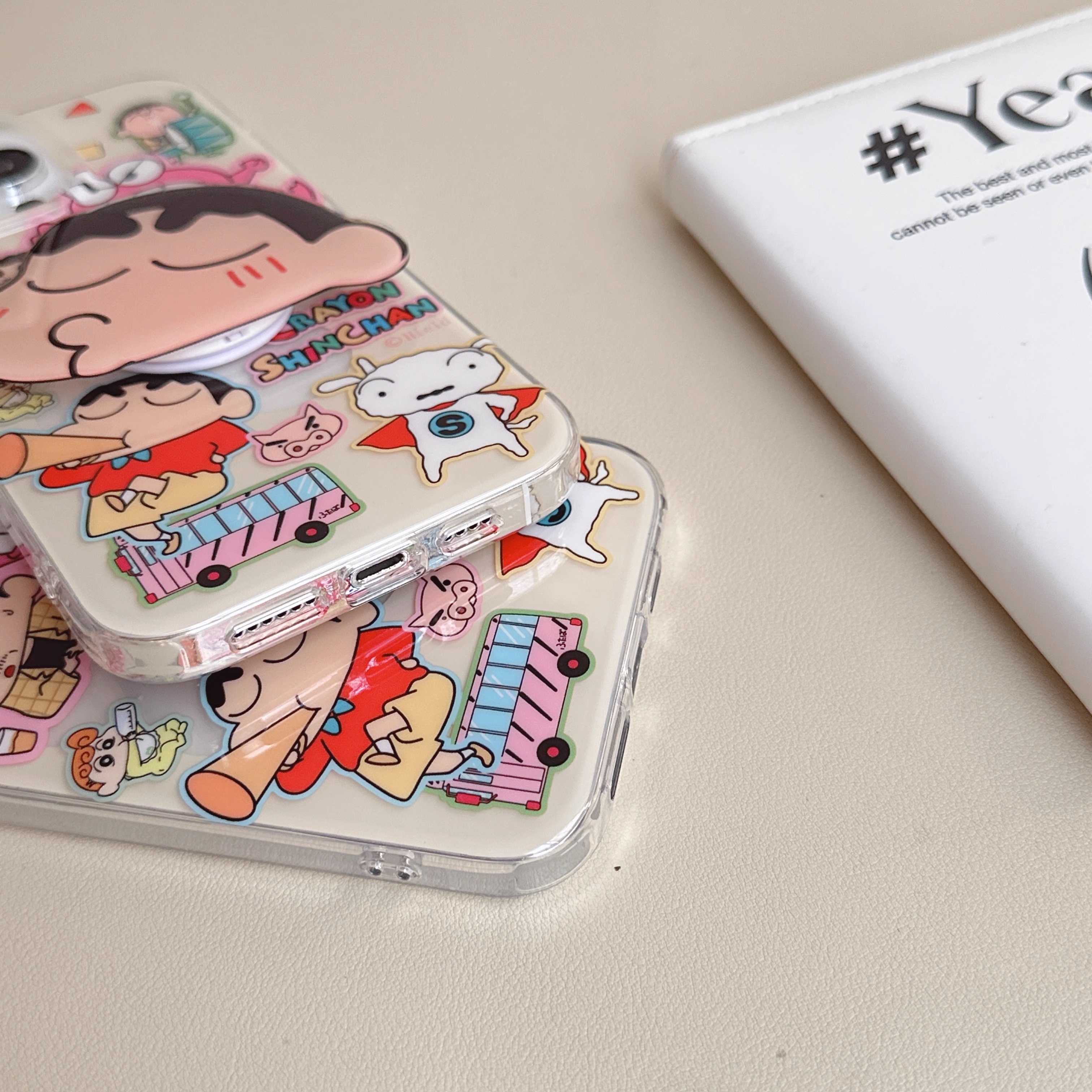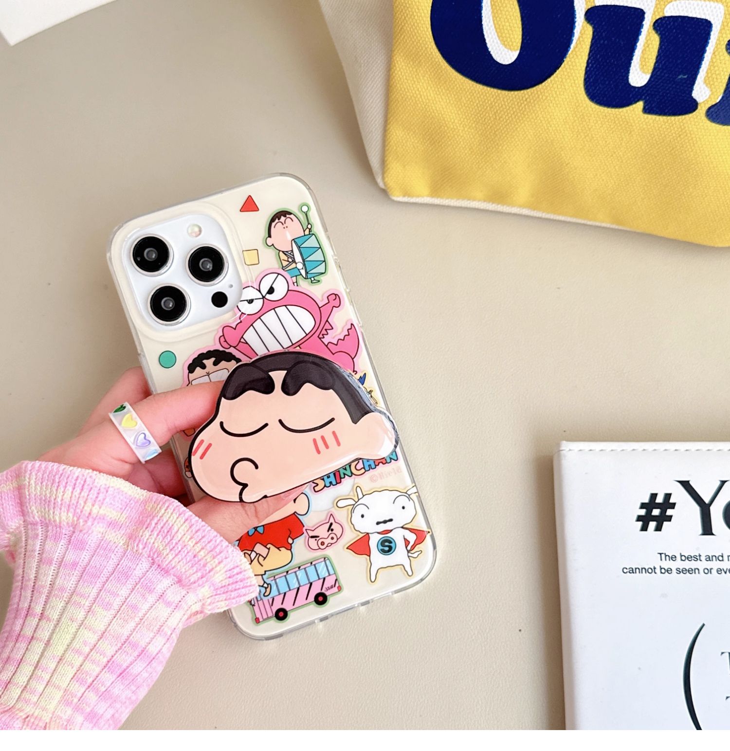 趙露思同款酷圖適用蘋果14手機殼新款趣味小新帶支架iphone14promax全包硅膠保護套13高級感卡通男女12防摔11