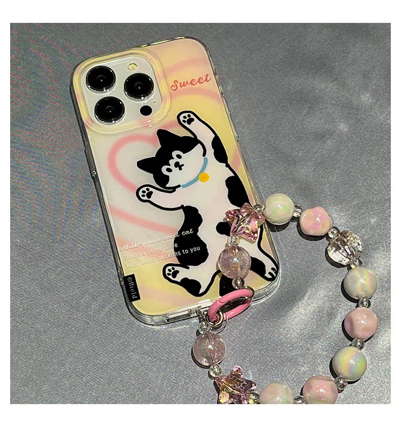 韓風ins愛心貓咪鏈條適用蘋果14手機殼iPhone13ProMax新款14Pro女款12防摔11硅膠13Pro創意網紅小眾全包軟殼