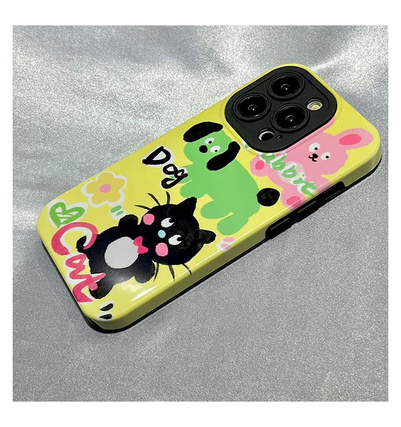 趣味少女可愛小狗兔子涂鴉適用蘋果14手機殼iPhone13ProMax新款14Pro女款12防摔11硅膠13Pro情侶小眾全包硬殼