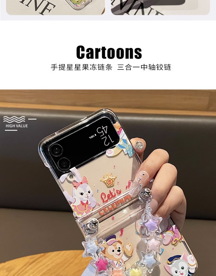 新款小動物適用于三星zflip4手機殼透明全包保護套zflip5小折疊W23flip卡通小熊zflip3星星手提鏈防摔ins外殼