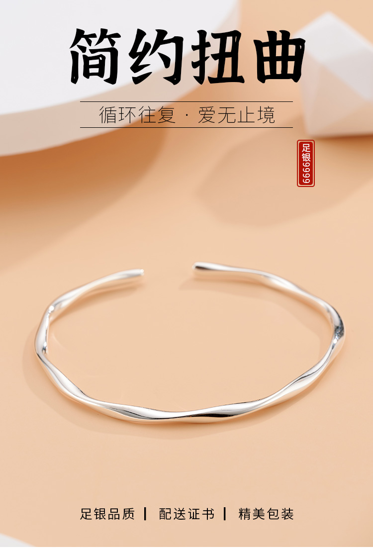 順慶銀樓S9999純銀手鐲女莫比烏斯手環簡約高級感銀飾送女友禮物