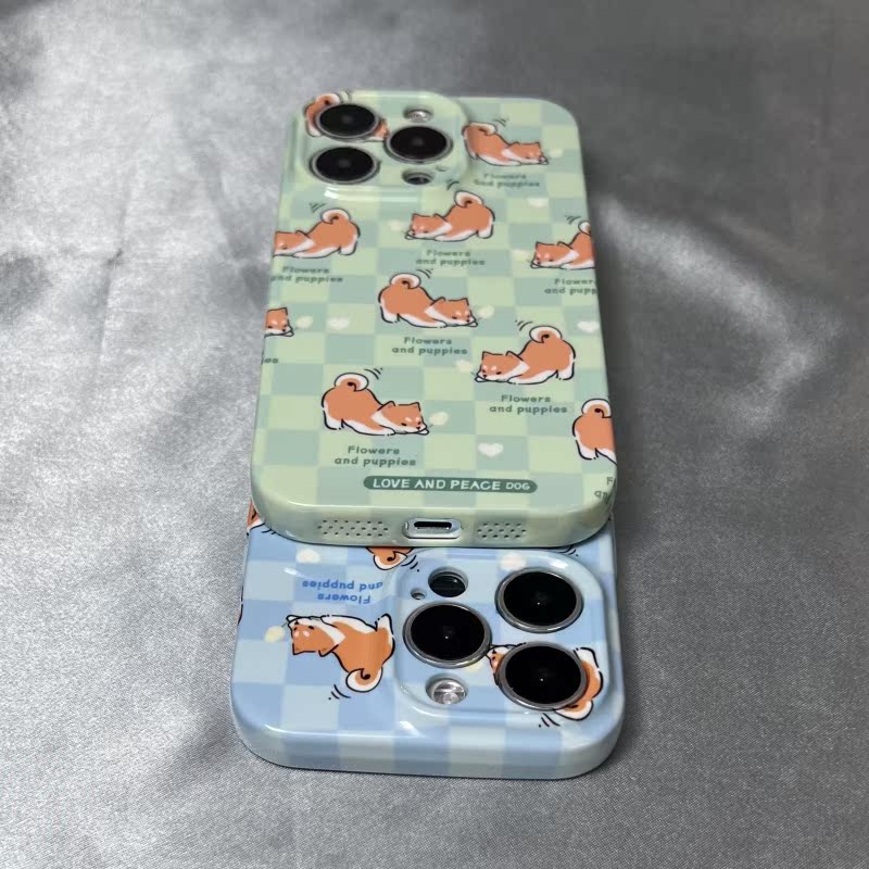 格子柴犬適用于蘋果14手機殼iPhone13/12/11/pro/max女潮XR可愛XS卡通7/8小清新plus菲林SE3軟防摔少女心全包