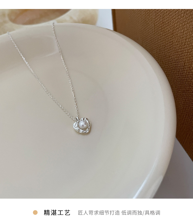 為晚925純銀不規則愛心珍珠項鏈女新款爆款輕奢小眾高級感鎖骨鏈
