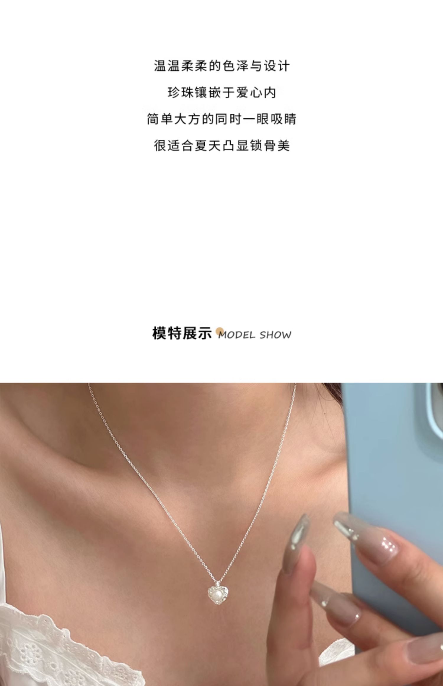 為晚簡約韓系ins風愛心吊墜鎖骨鏈珍珠項鏈女款小眾設計鎖骨鏈