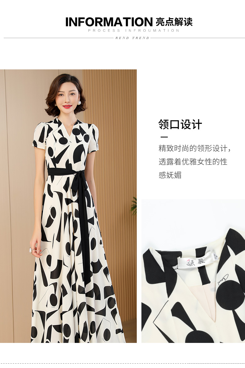 高級感時尚印花連衣裙2023夏季新時尚減齡端莊大氣到腳踝大擺長裙