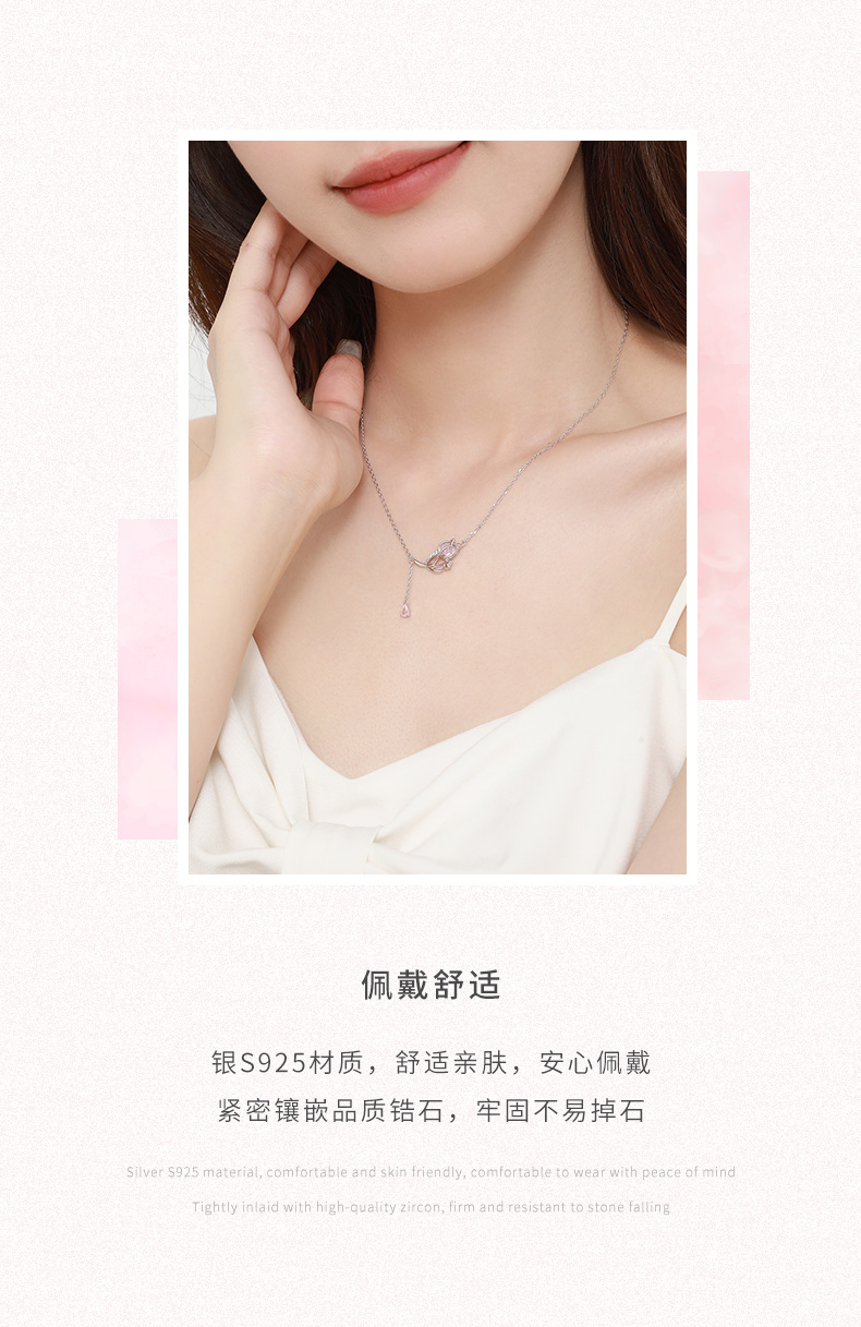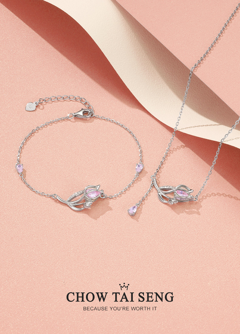 周大生怦然郁見郁金香項鏈輕奢小眾純銀頸鏈首飾高級感生日禮物