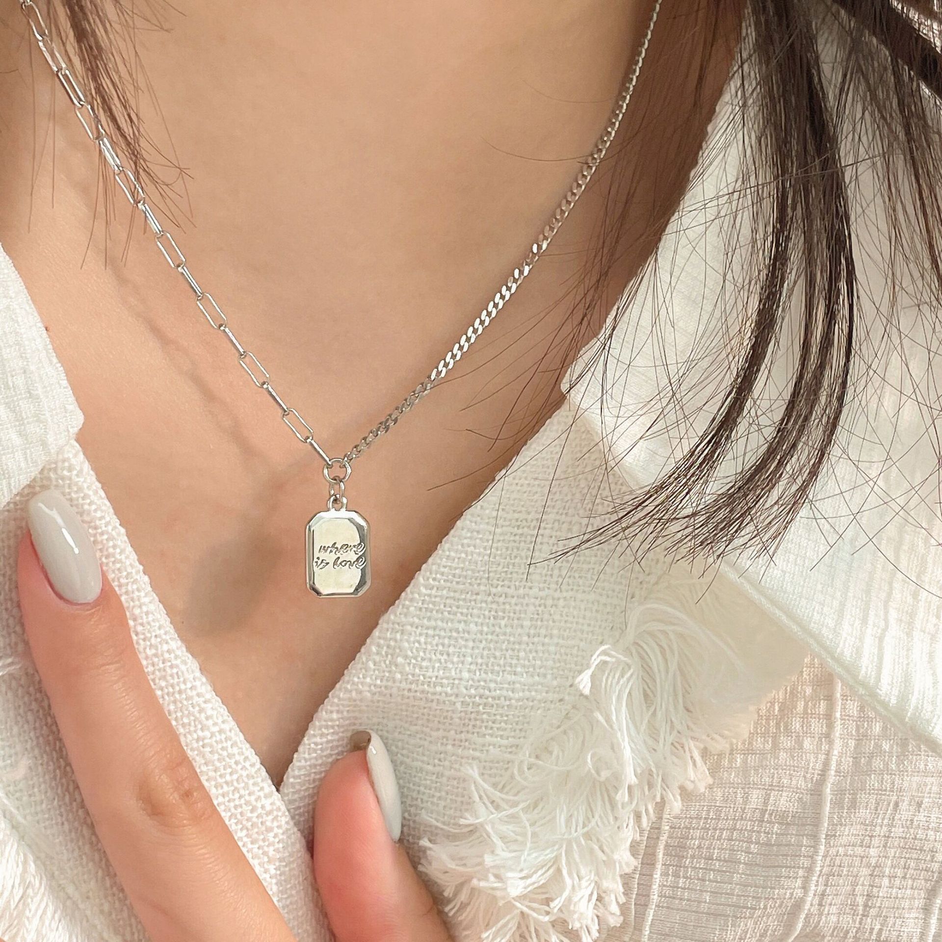 Yooper純銀方牌項鏈女S925銀輕奢簡約小眾設計潮時尚鎖骨拼接AB鏈