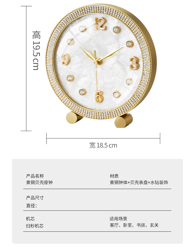 現代輕奢黃銅座鐘歐式簡約貝殼桌面臺鐘客廳家用時尚裝飾擺件擺鐘