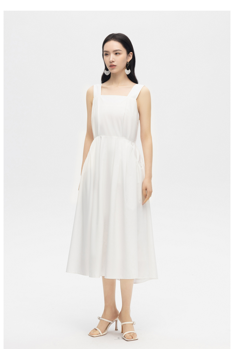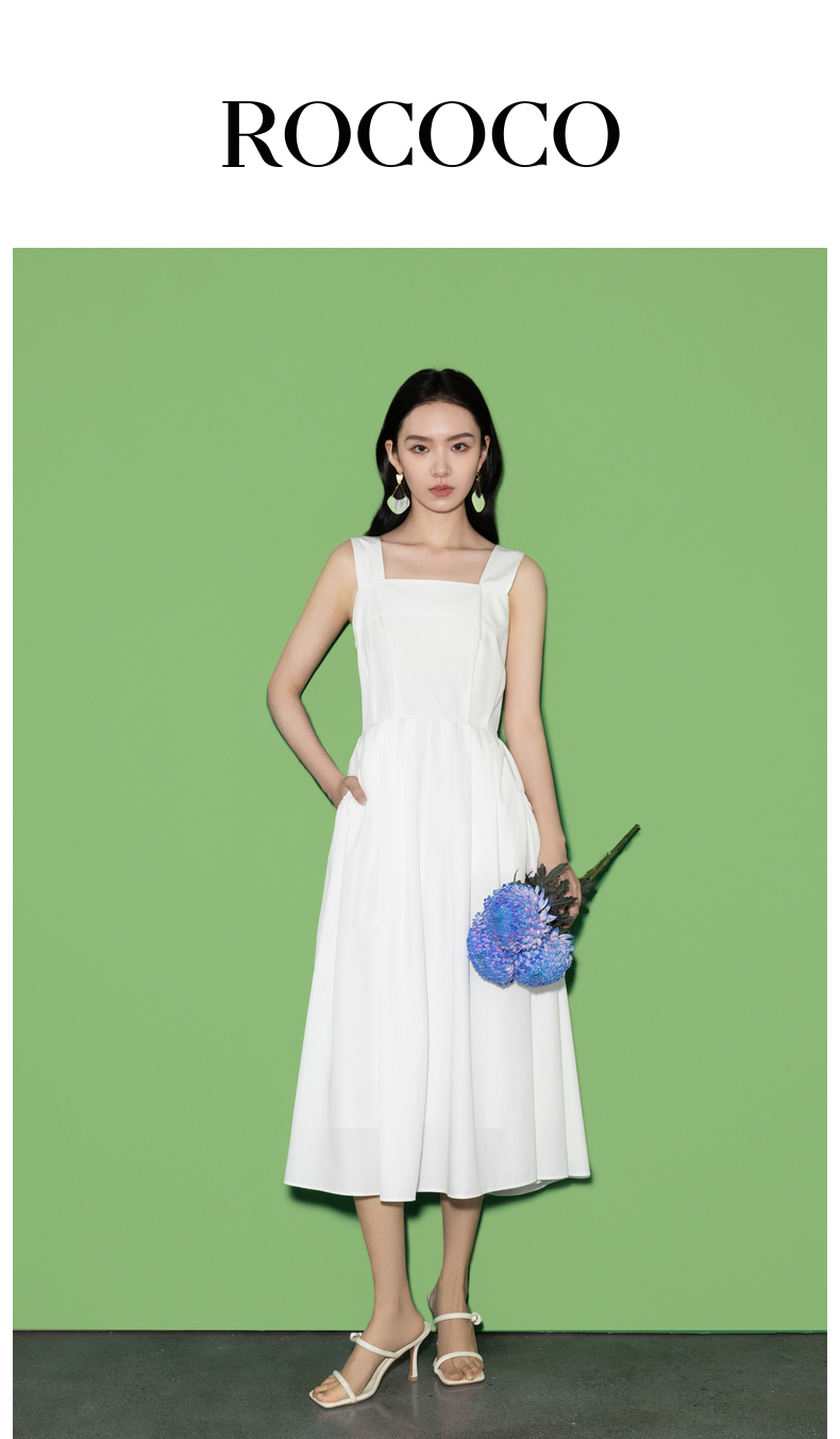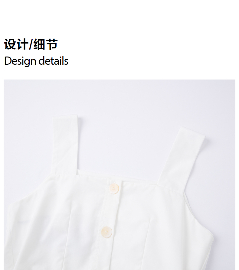 ROCOCO商場同款2023秋新款甜美吊帶紐扣背心裙氣質白色露腰連衣裙