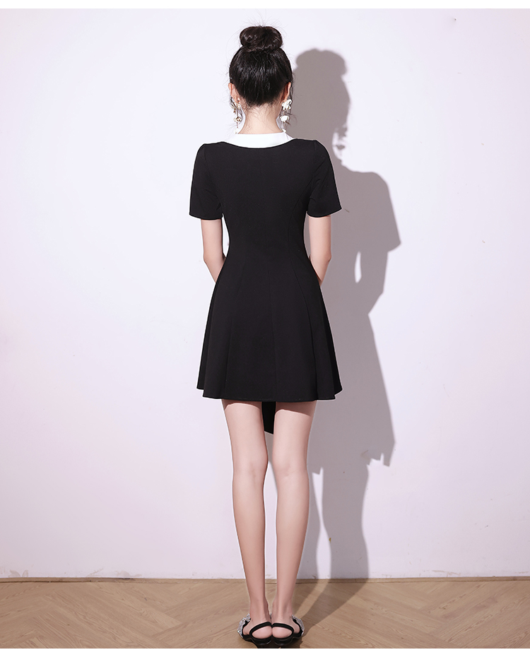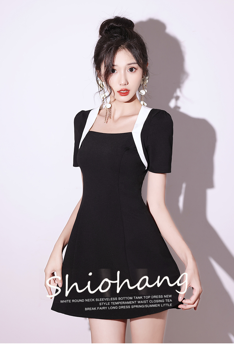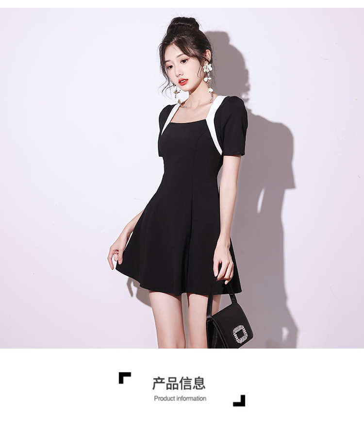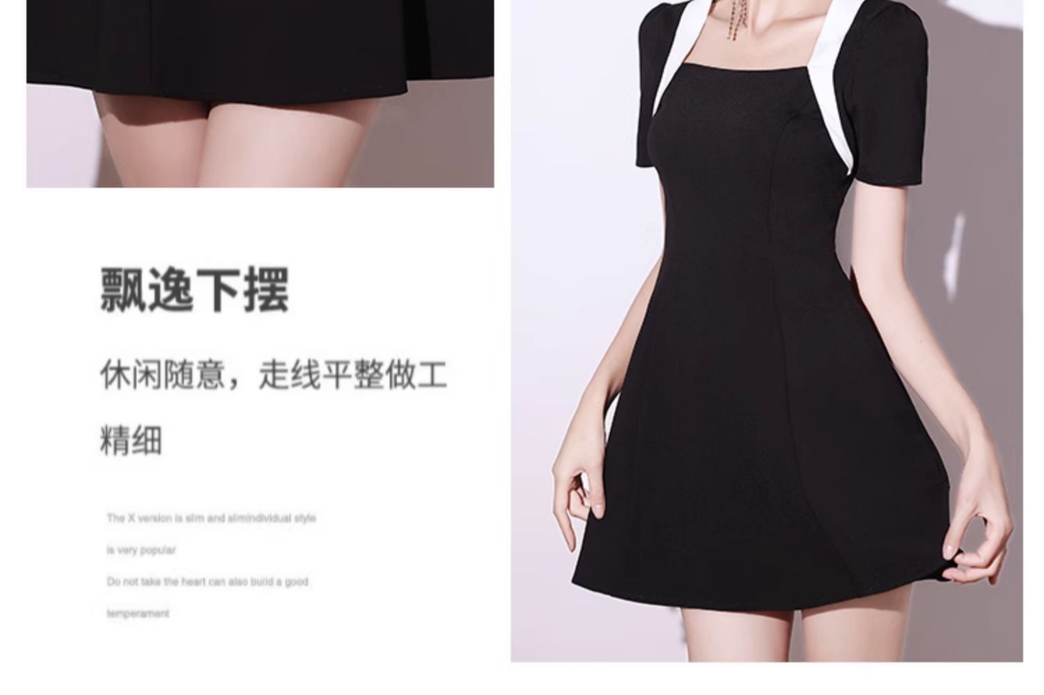新款法式氣質設計感黑白撞色拼接小個子連衣裙女顯瘦a字小黑裙夏