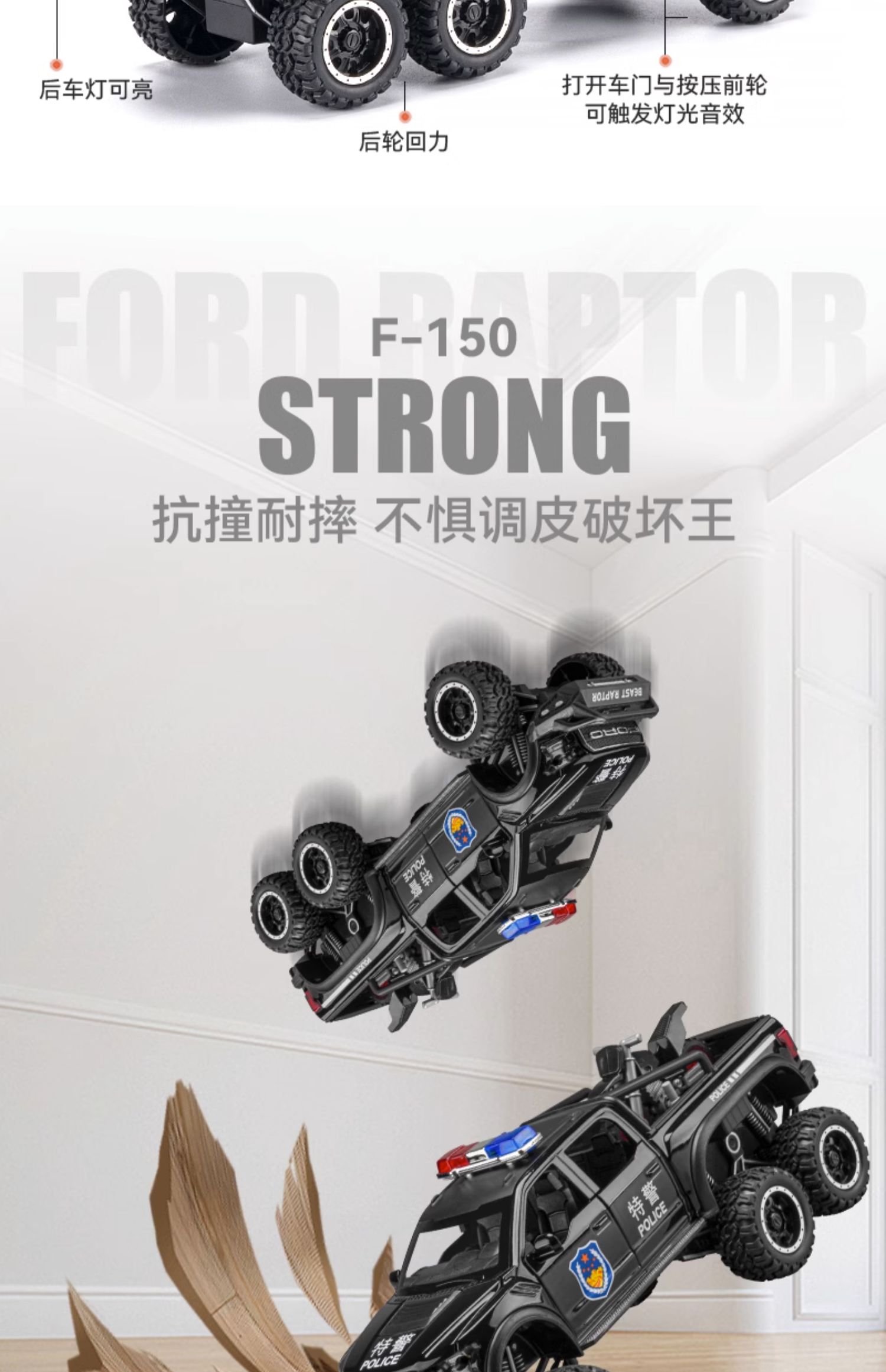 警車玩具兒童合金車模型福特猛禽F-150仿真可開門男孩大號警察車