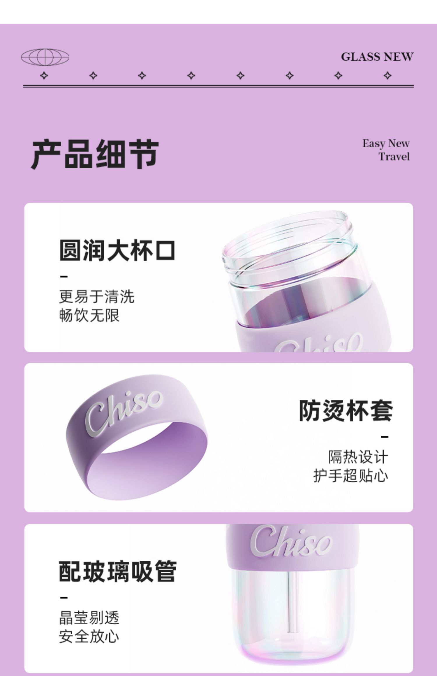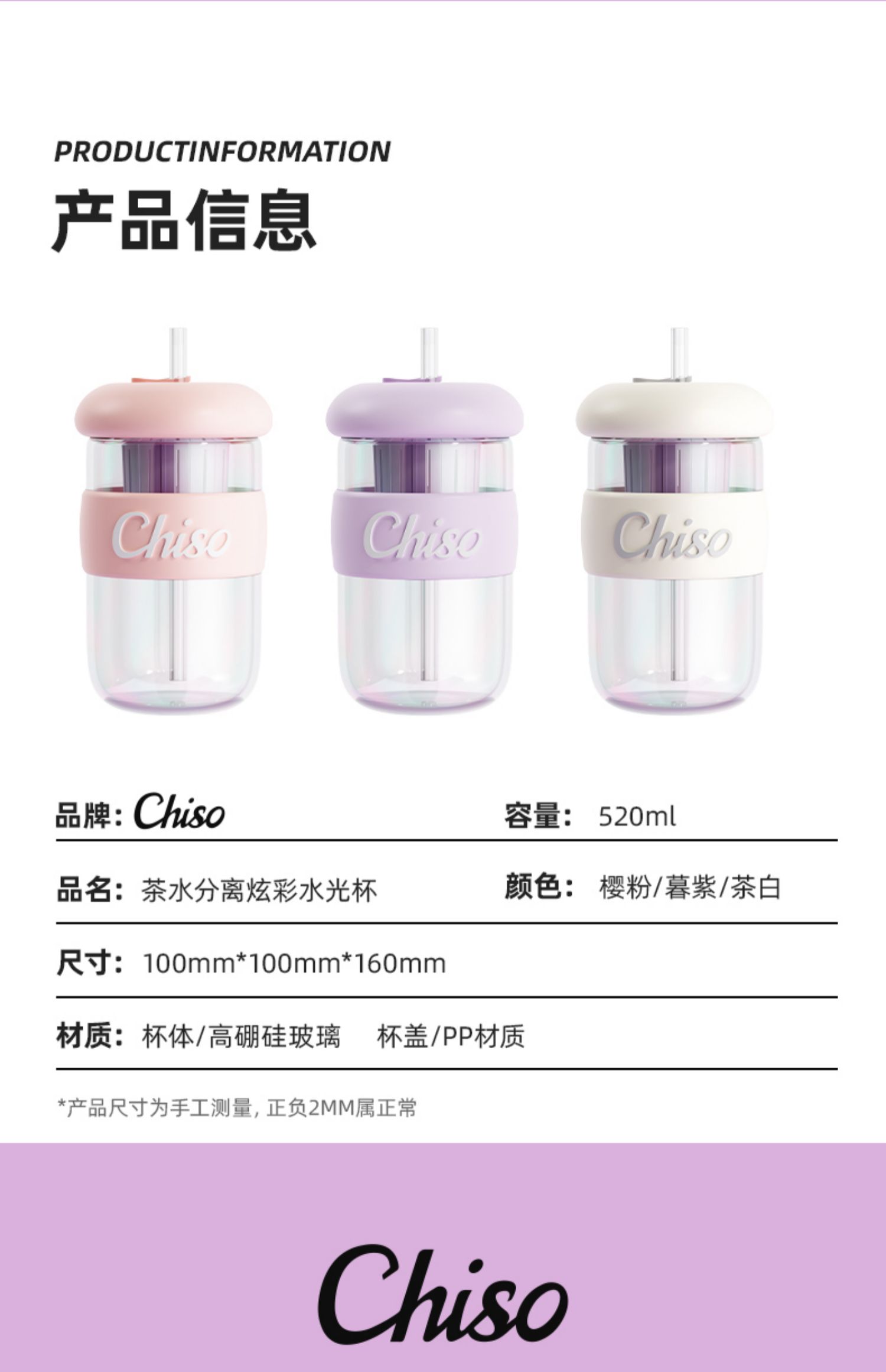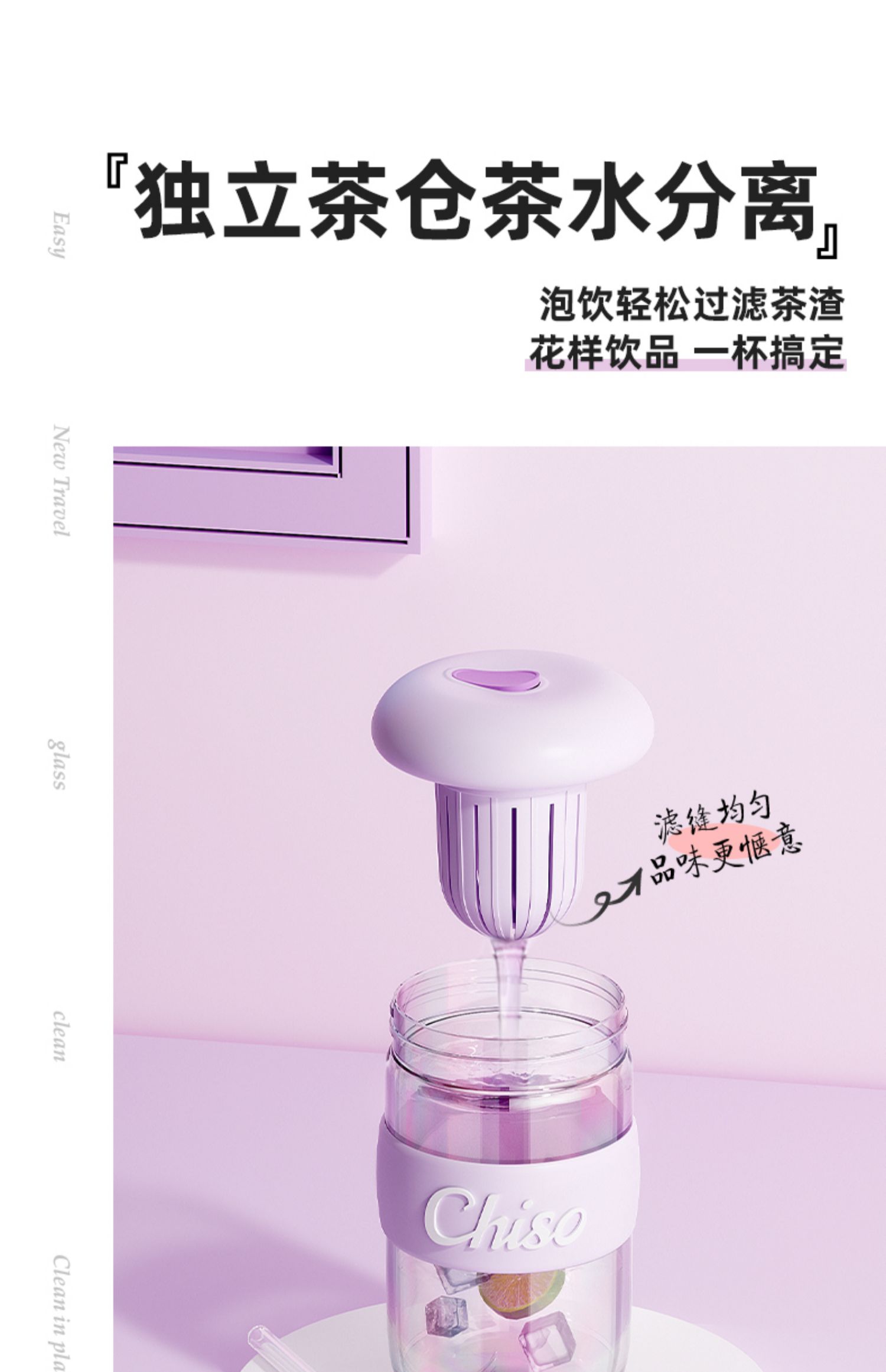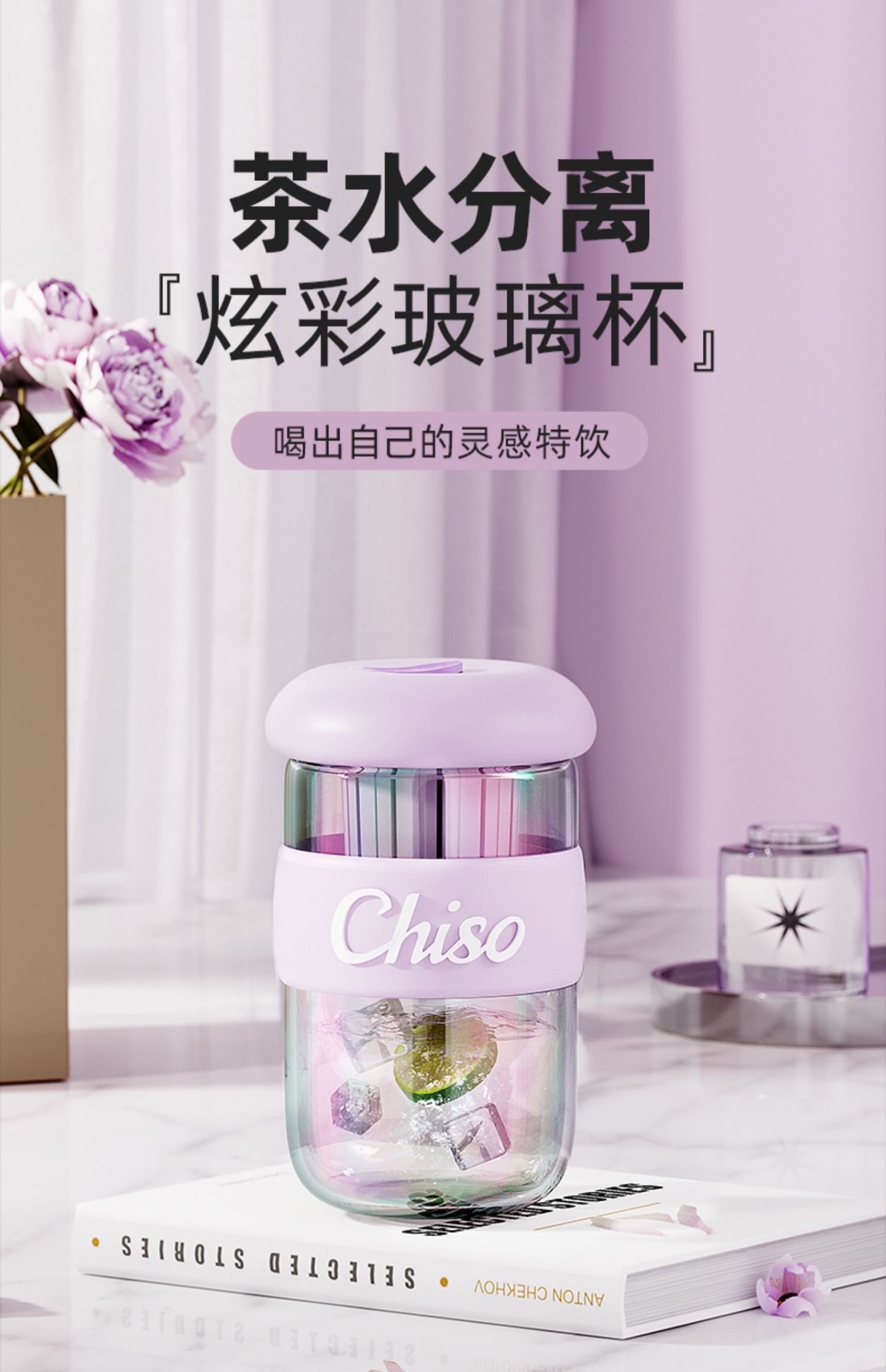 雀初chiso炫彩玻璃杯子2023新款吸管杯便攜茶水分離泡茶杯水杯女