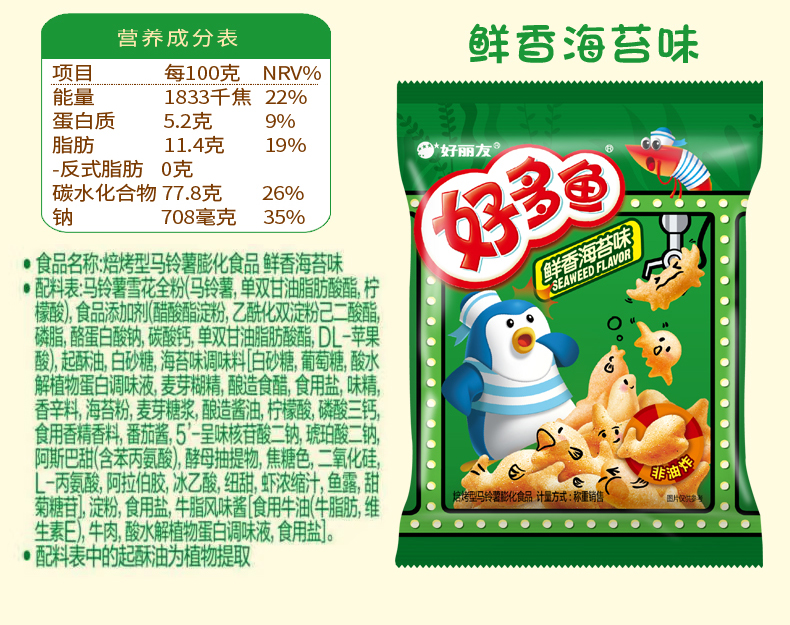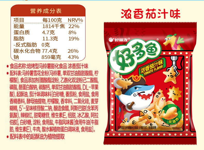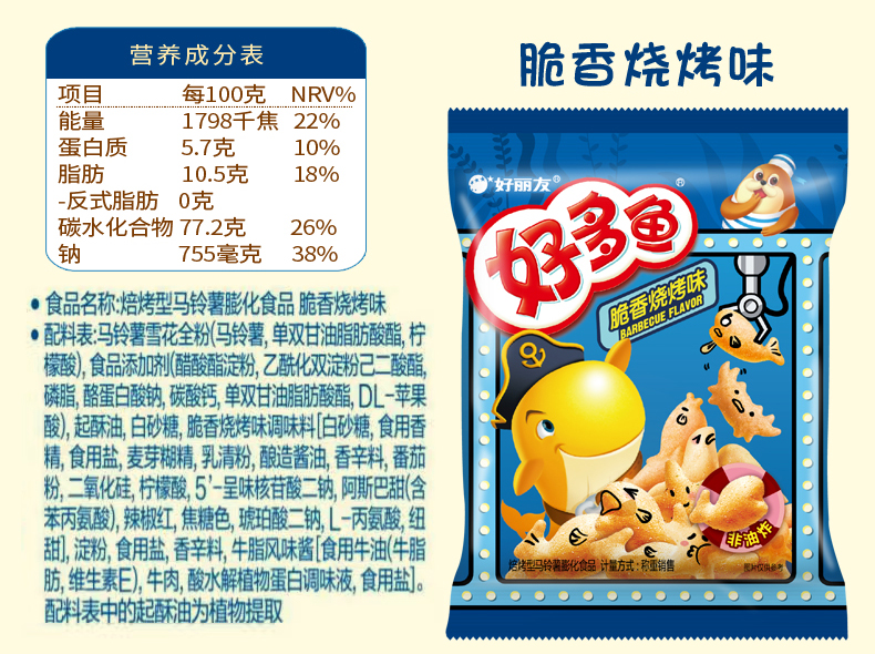 好麗友好多魚零食兒童膨化餅干小吃薯片辦公室解饞休閑非油炸食品