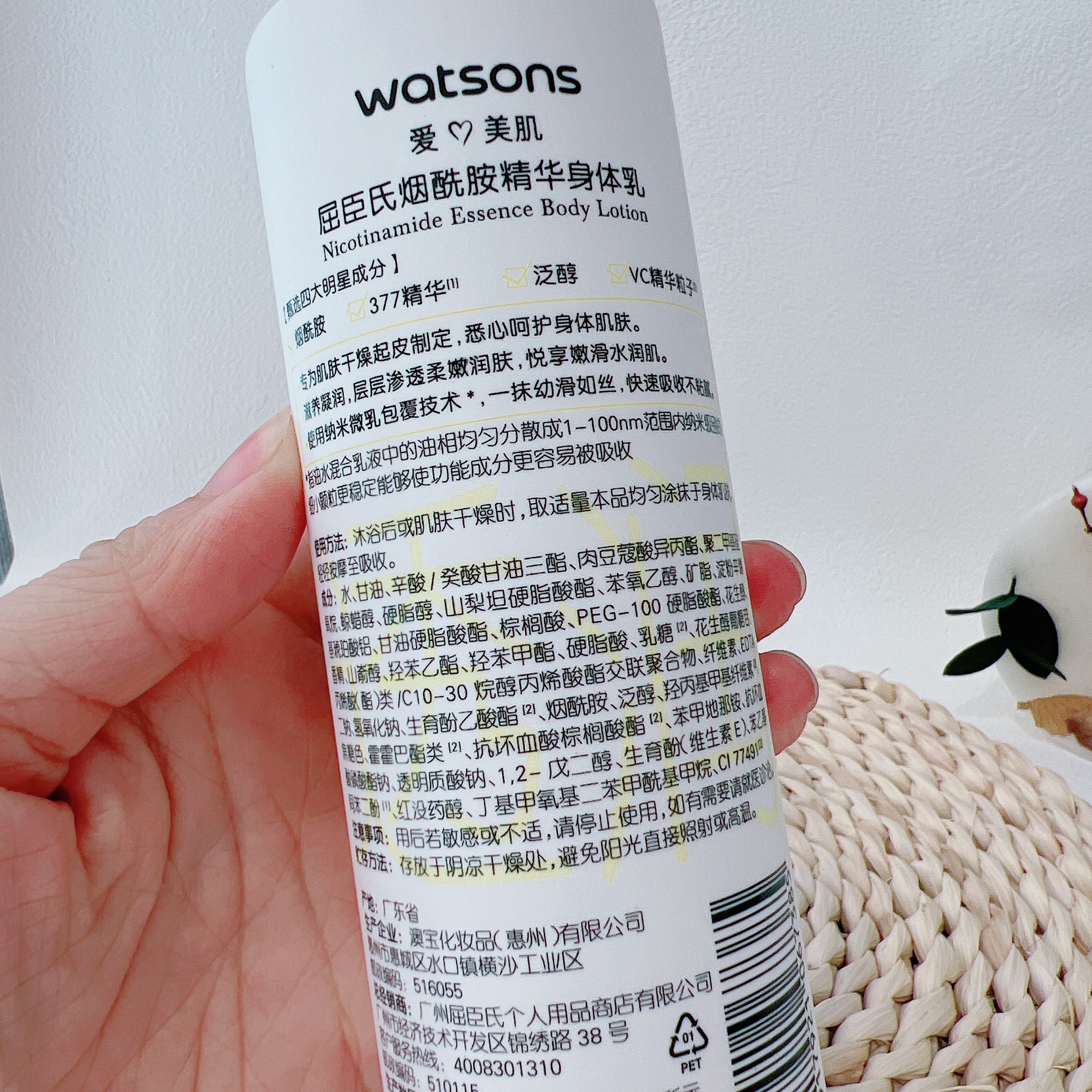 白成一道光~屈臣氏煙酰胺精華身體乳377精華250ml水潤保濕24年7月