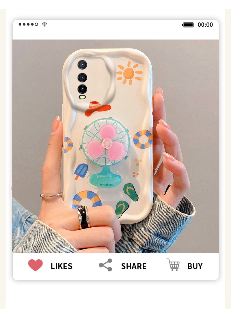 適用vivoy70s手機殼夏日圖案簡約Y70t高級感創意y72小清新Y73s網紅女y74s新款VIVOY75S包邊防摔y76s支架風扇