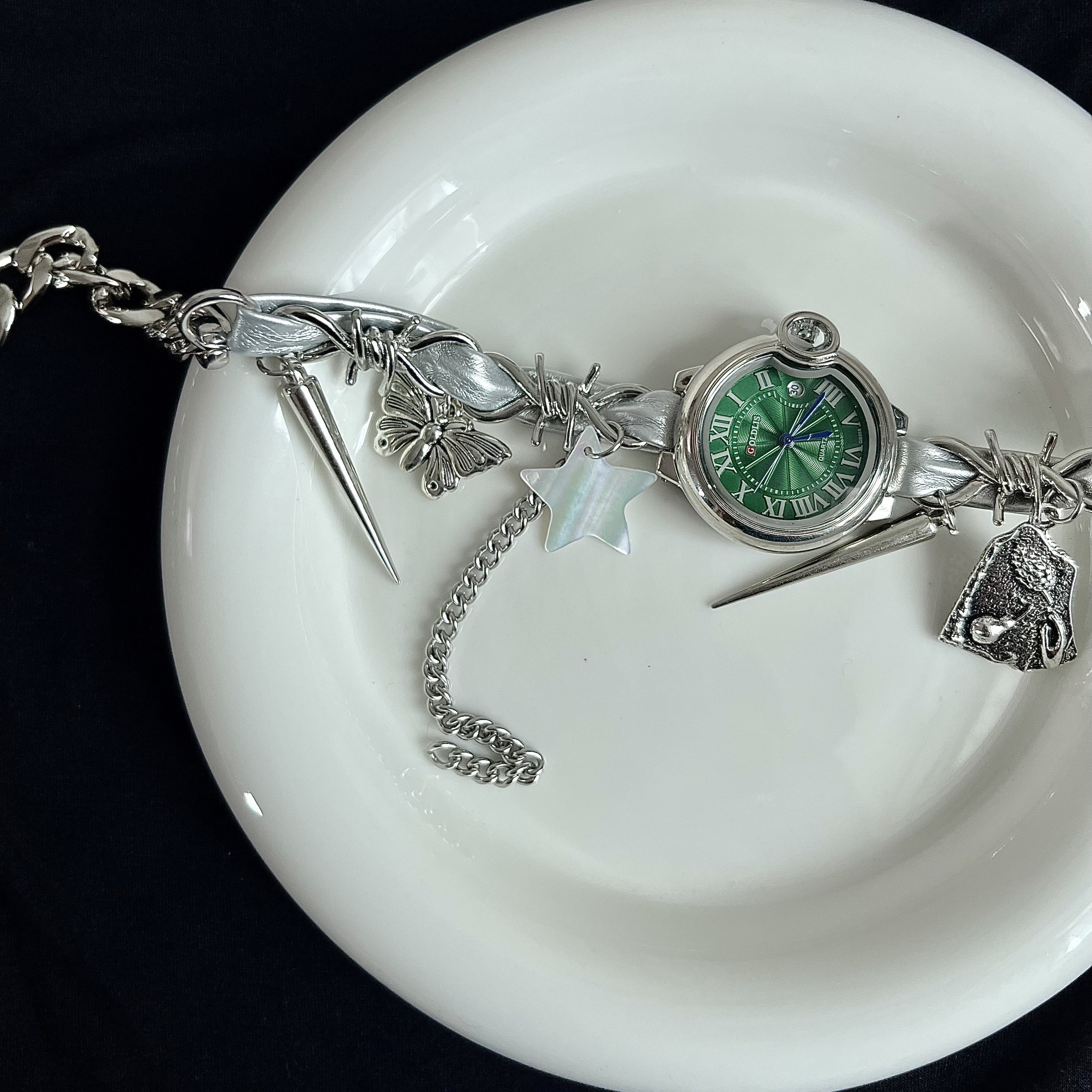 [樓哈哈]賽博朋克蝴蝶朋克鐘表choker項鏈y2k飾品星星流蘇鎖骨鏈