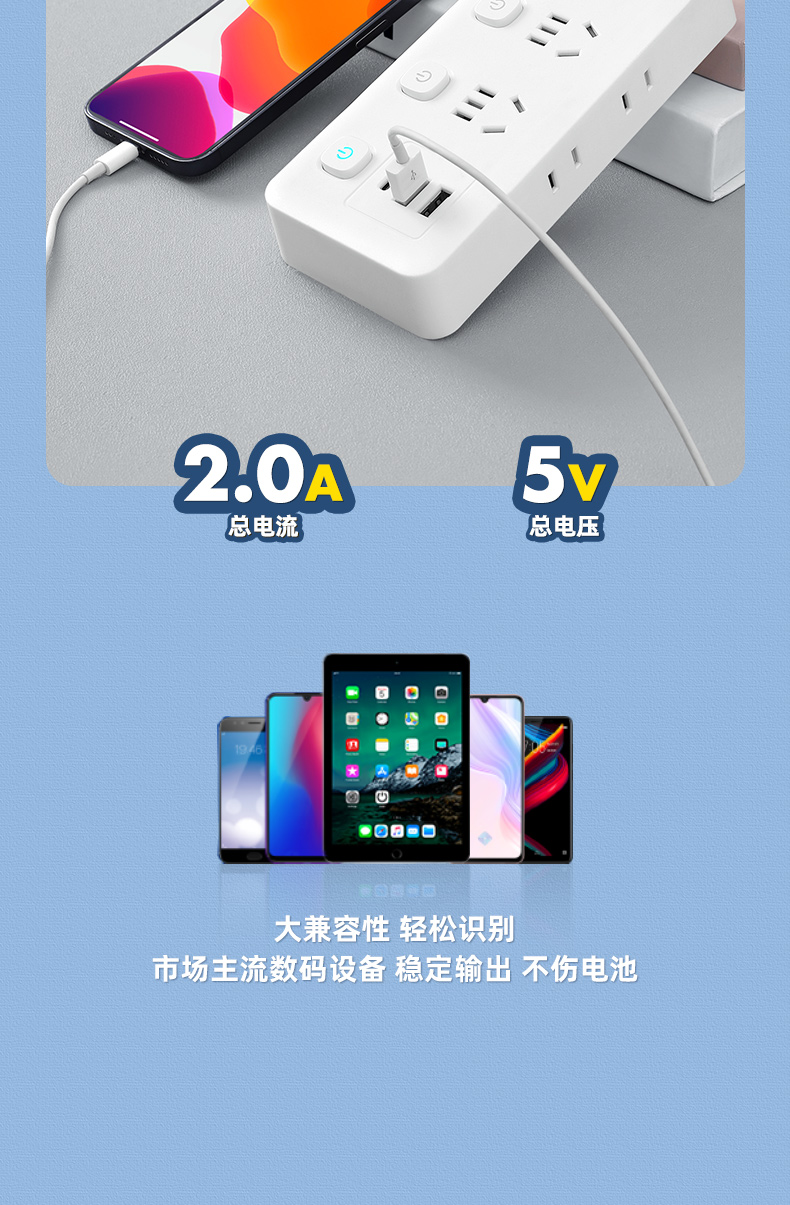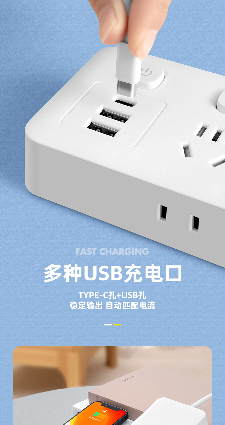 公正品牛可伸縮收納多功能家用usb電源插座插排帶線插線板延長線